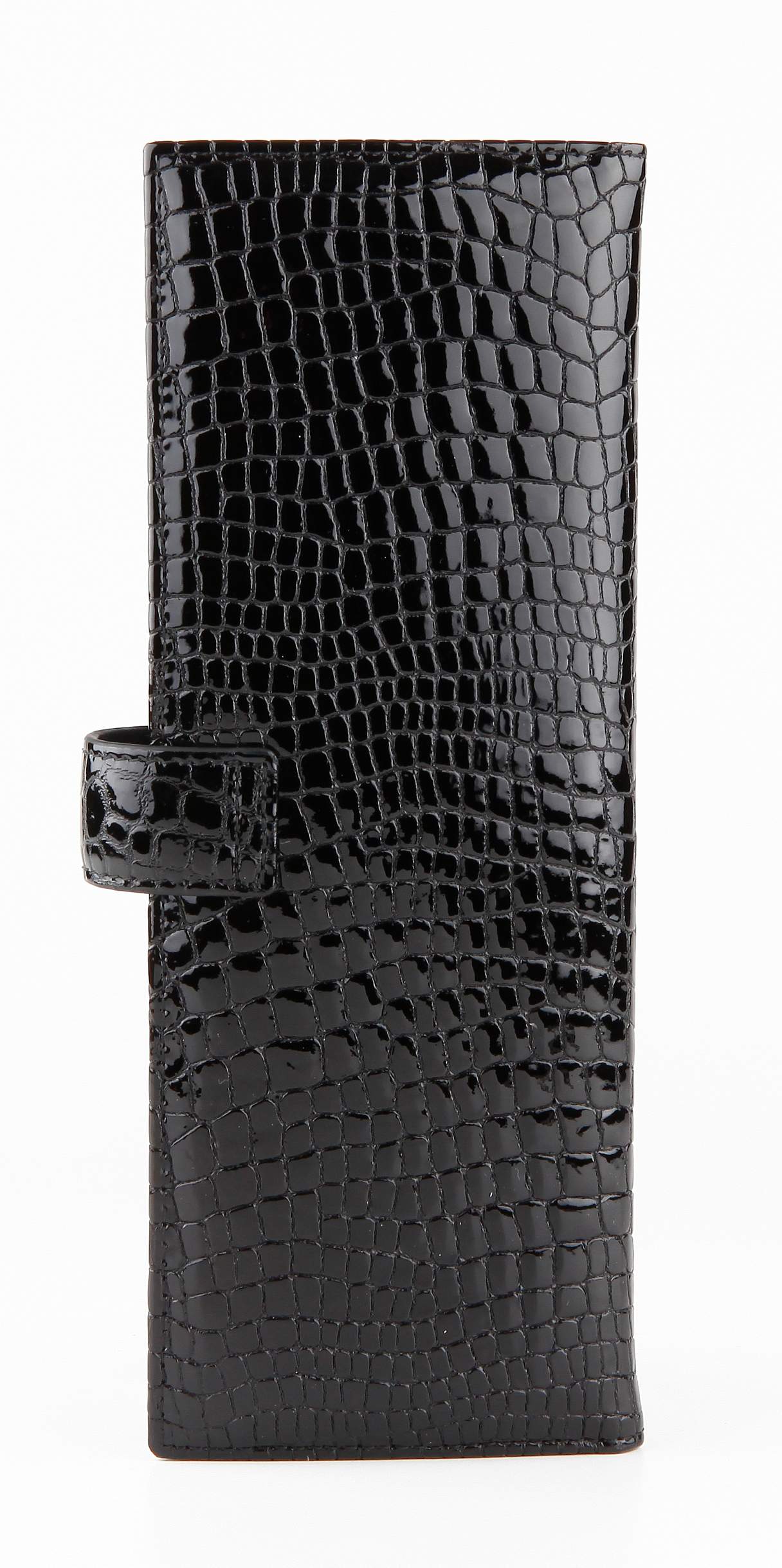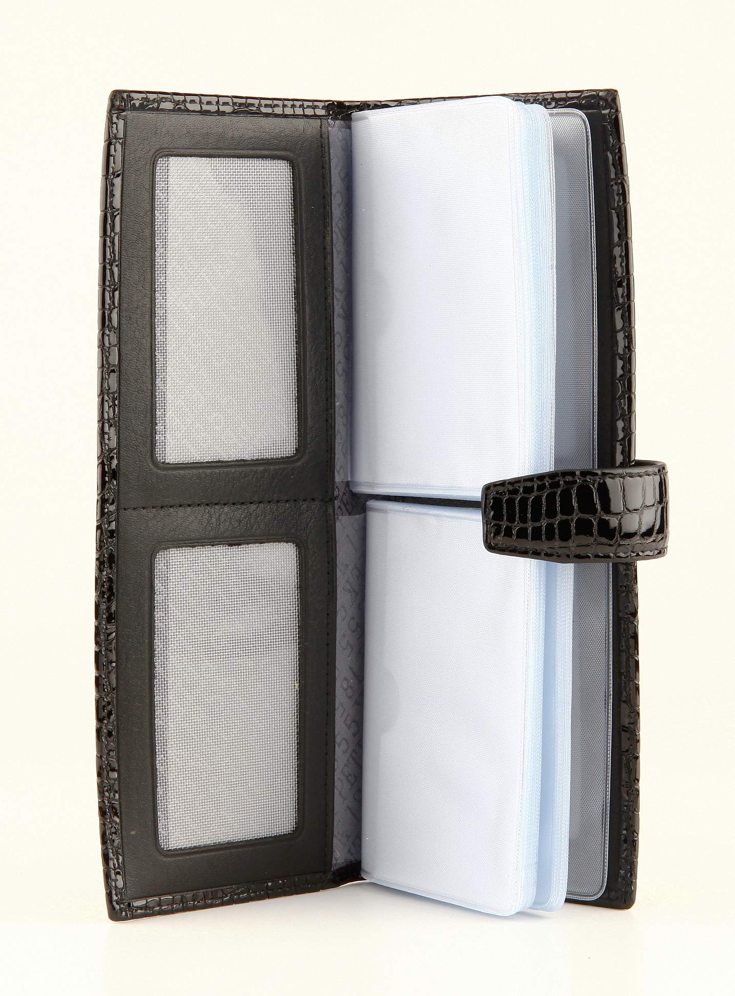 Шикарная визитница из натуральной кожи. Классический дизайн, застегивается на кнопку. Внутри имеются 20 файлов из плотного пластика, по два отделения с каждой стороны. Максимальное количество визитных карточек - 80