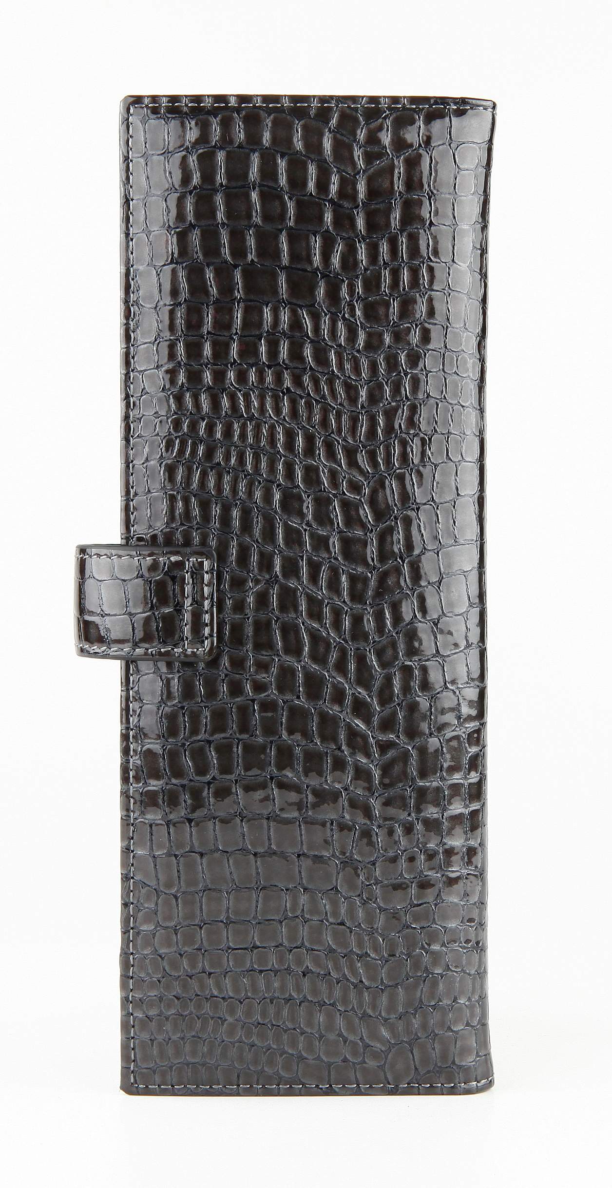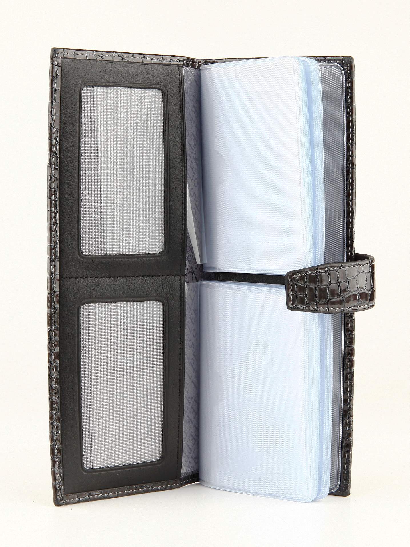 Шикарная визитница из натуральной кожи. Классический дизайн, застегивается на кнопку. Внутри имеются 20 файлов из плотного пластика, по два отделения с каждой стороны. Максимальное количество визитных карточек - 80