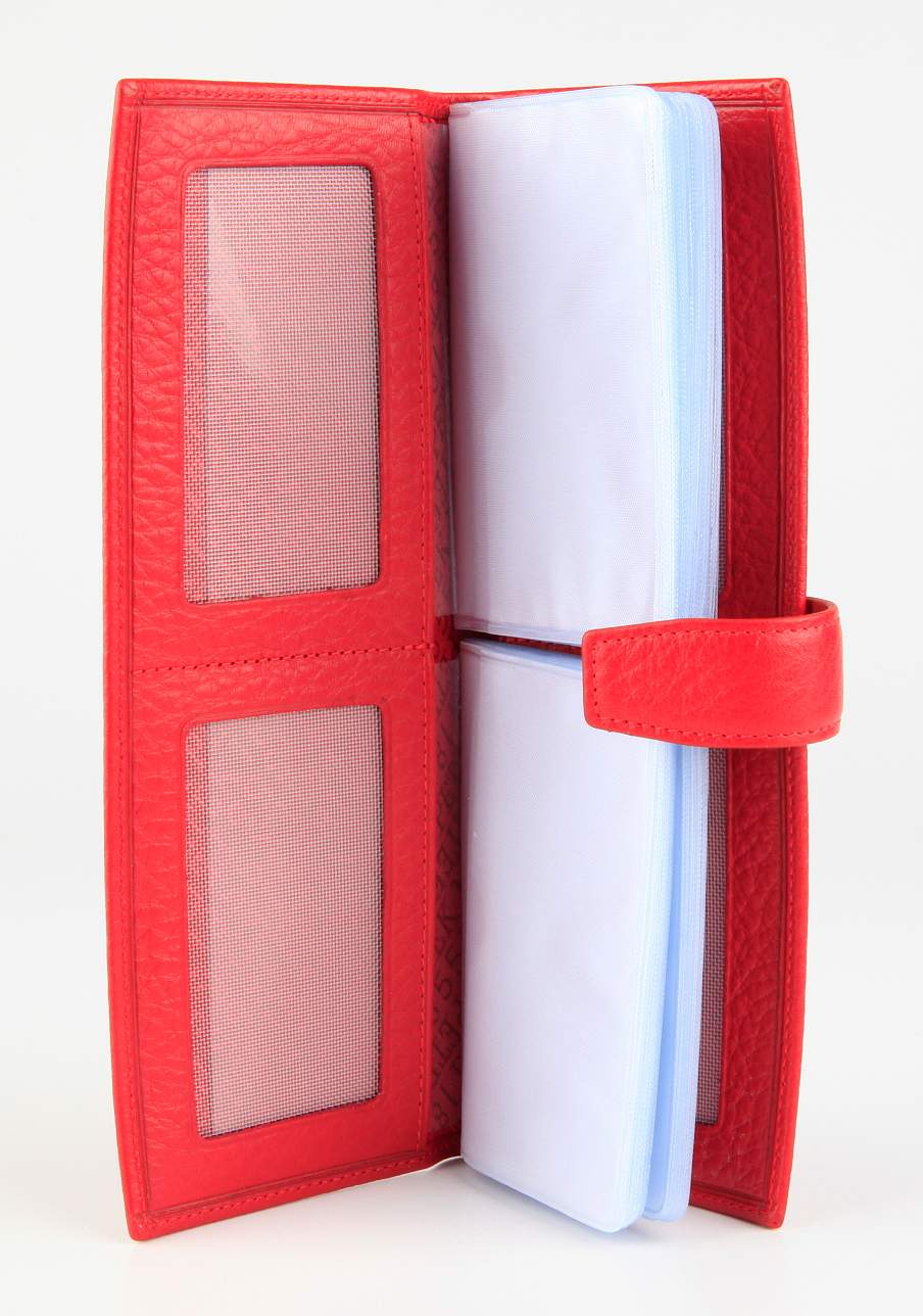 Шикарная визитница из натуральной кожи. Классический дизайн, застегивается на кнопку. Внутри имеются 20 файлов из плотного пластика, по два отделения с каждой стороны. Максимальное количество визитных карточек - 80