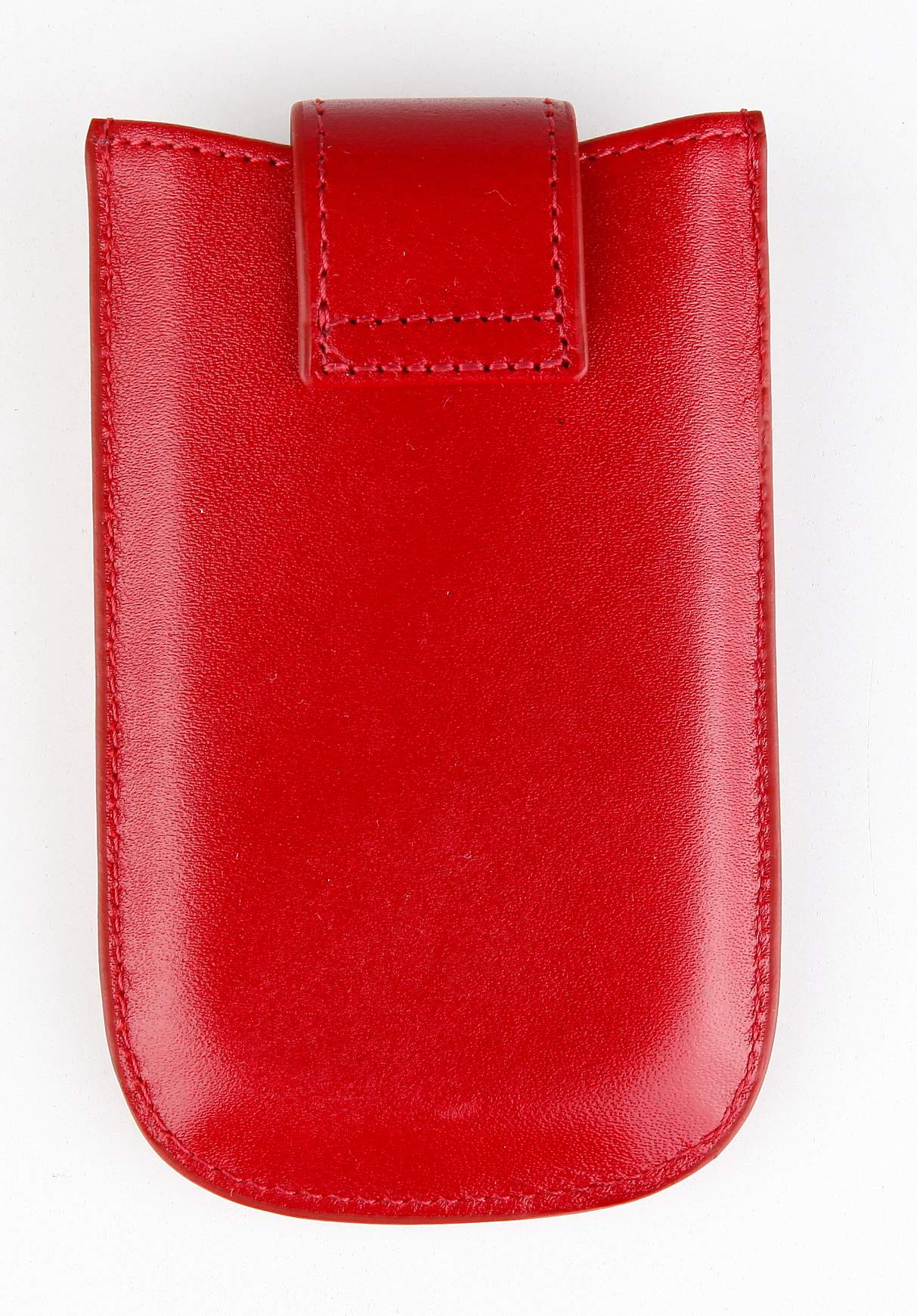 Кожаная визитница Petek, выполнена в форме футляра. Закрывается хлястиком на кнопке.