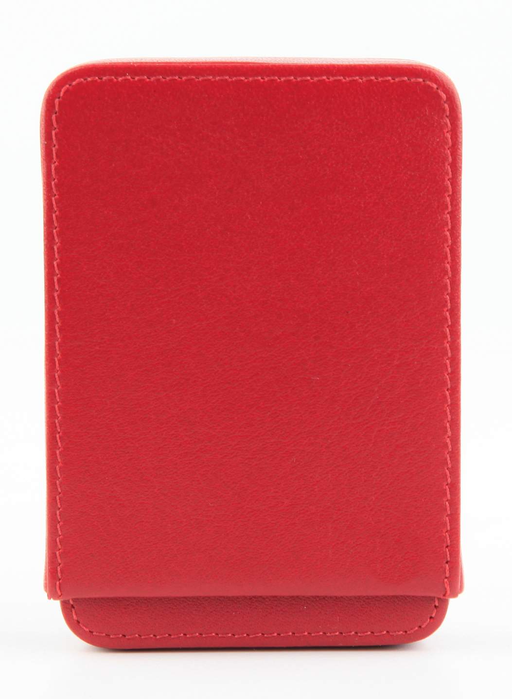 Небольшая визитница для собственных визиток из натуральной кожи. Состоит из двух частей, в одну из которых вкладываются визитные карточки, а вторая часть - накрывает первую сверху. Таким образом получается твердый футляр, визитки не помнутся и не деформируются.