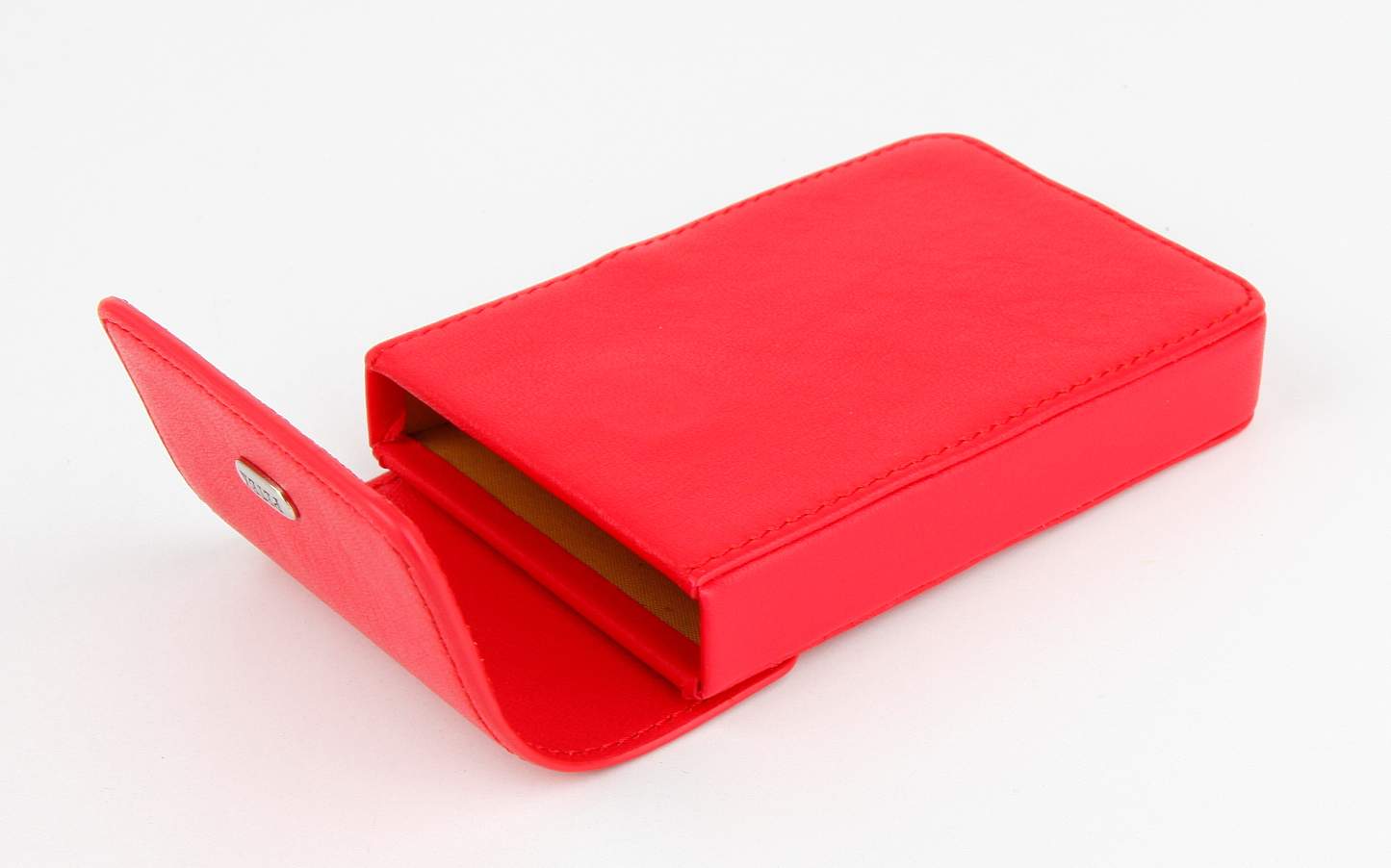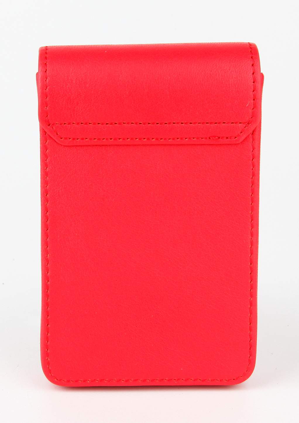 Компактная женская кожаная визитница Petek красного цвета с гладкой фактурой, которая представляет собой блок для хранения карточек. Она легко и удобно открывается и закрывается благодаря магнитной застёжке.