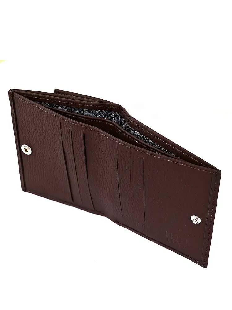 Женское портмоне Petek имеет два отделения для купюр, несколько отделений для пластиковых карт и отделение для мелочи, которое закрывается на кнопку.