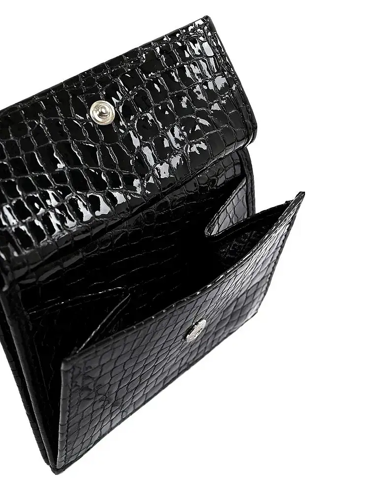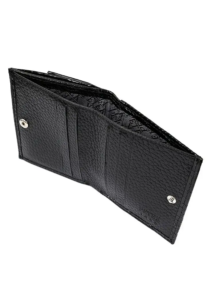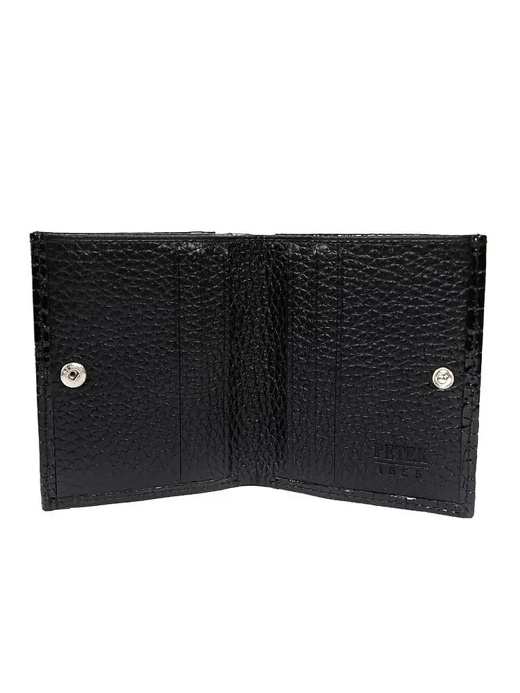 Элегантное портмоне из натуральной кожи. Стильная и оригинальная модель. Внутри: одно отделение для купюр, шесть отделений для визитных или пластиковых карт, монетница на кнопке; снаружи: на задней стенке находится карман.
