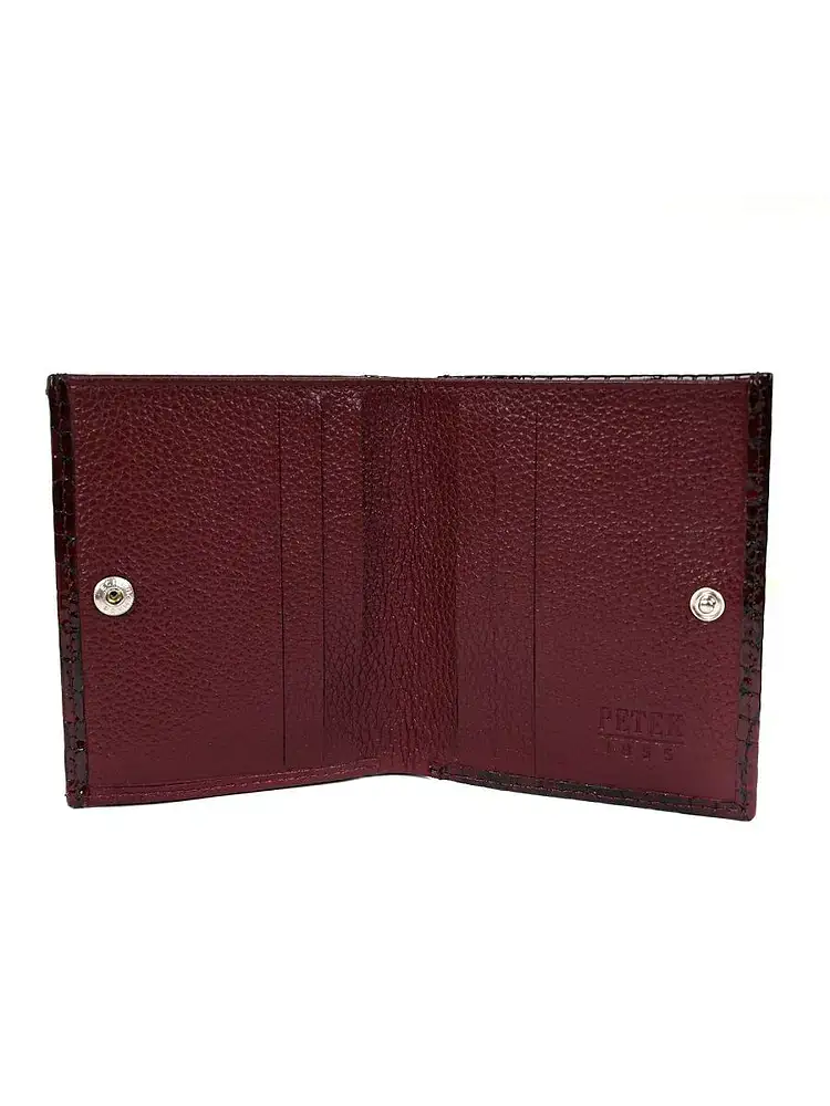 Элегантное портмоне из натуральной кожи. Стильная и оригинальная модель. Внутри: одно отделение для купюр, шесть отделений для визитных или пластиковых карт, монетница на кнопке; снаружи: на задней стенке находится карман.