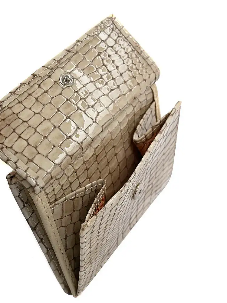 Элегантное портмоне из натуральной кожи. Стильная и оригинальная модель. Внутри: одно отделение для купюр, шесть отделений для визитных или пластиковых карт, монетница на кнопке; снаружи: на задней стенке находится карман.