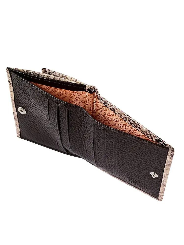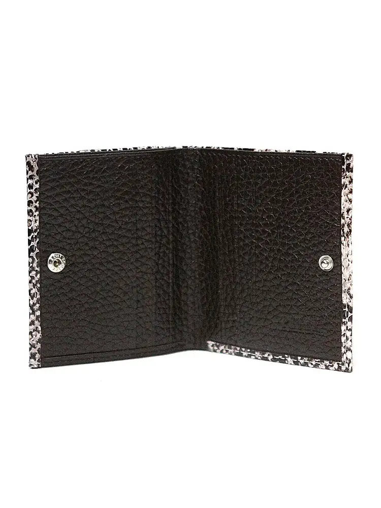 Элегантное портмоне из натуральной кожи. Стильная и оригинальная модель. Внутри: одно отделение для купюр, шесть отделений для визитных или пластиковых карт, монетница на кнопке; снаружи: на задней стенке находится карман.
