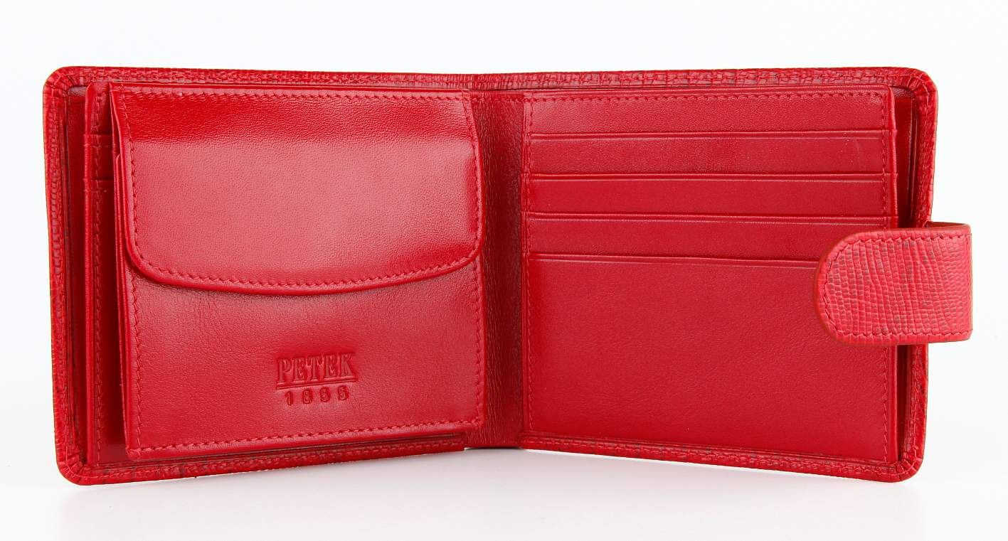 Женский элегантный кошелек Petek из натуральной кожи. Эта удобная и многофункциональная модель состоит из 1 отделения для купюр, 9 отделений для пластиковых карт, 5 карманов, 1 прозрачного отделения-сетки, с обратной стороны большая монетница на кнопке.