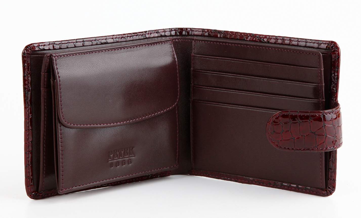 Женский элегантный кошелек Petek из натуральной кожи. Эта удобная и многофункциональная модель состоит из 1 отделения для купюр, 9 отделений для пластиковых карт, 5 карманов, 1 прозрачного отделения-сетки, с обратной стороны большая монетница на кнопке.