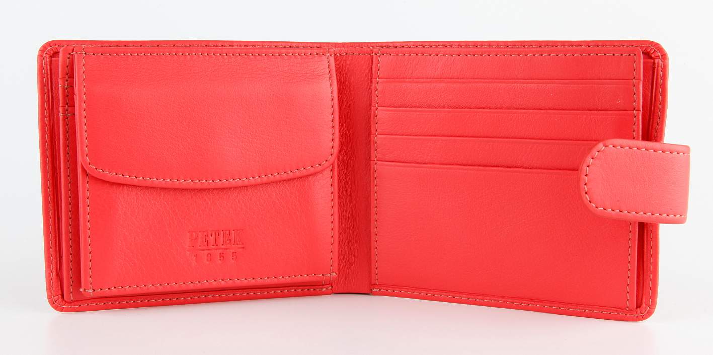 Женский элегантный кошелек Petek из натуральной кожи. Эта удобная и многофункциональная модель состоит из 1 отделения для купюр, 9 отделений для пластиковых карт, 5 карманов, 1 прозрачного отделения-сетки, с обратной стороны большая монетница на кнопке.