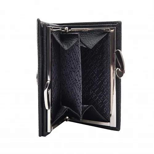 Кошелек. Раскладывается пополам, закрывается на кнопку, внутри: два больших отдела для купюр, отделение для мелочи с классическим зажимом (внутри - два отдела), три отделений для карт, три потайных кармана для документов.