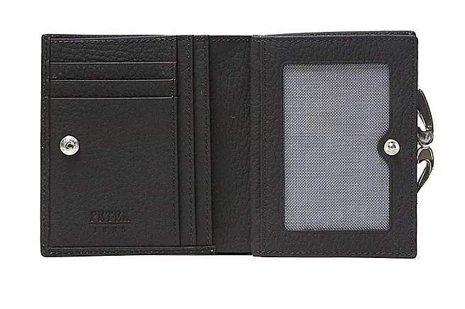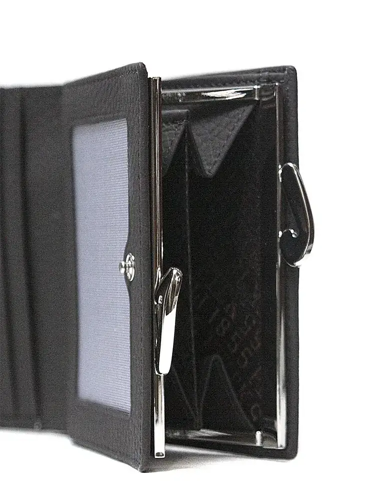 Кошелек. Раскладывается пополам, закрывается на кнопку, внутри: два больших отдела для купюр, отделение для мелочи с классическим зажимом (внутри - два отдела), три отделений для карт, три потайных кармана для документов.