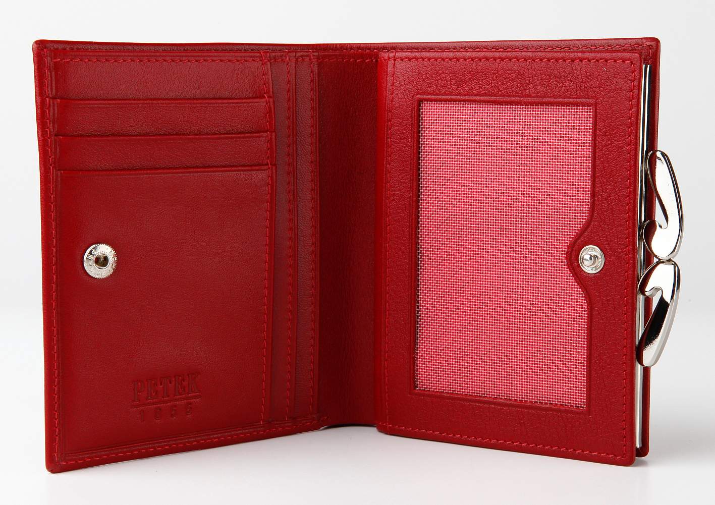 Женское элегантное портмоне Petek изготовлено из высококачественной кожи. Внутри портмоне имеет два отделения для банкнот, карман с сетчатым окошком и потайной карман для хранения важных документов или карт, отделение для монет с металлической застежкой и шесть отделений для кредитных и визитных карт. Этот стильный и практичный аксессуар станет незаменимым помощником для любой современной женщины.