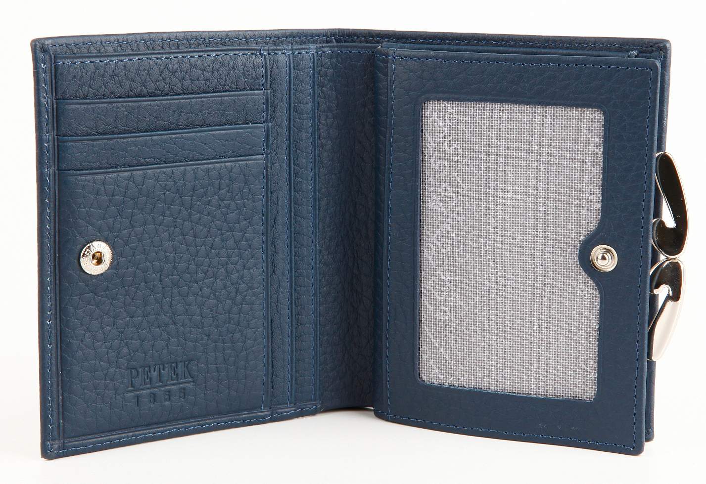 Кошелек. Раскладывается пополам, закрывается на кнопку, внутри: два больших отдела для купюр, отделение для мелочи с классическим зажимом (внутри - два отдела), три отделений для карт, три потайных кармана для документов.