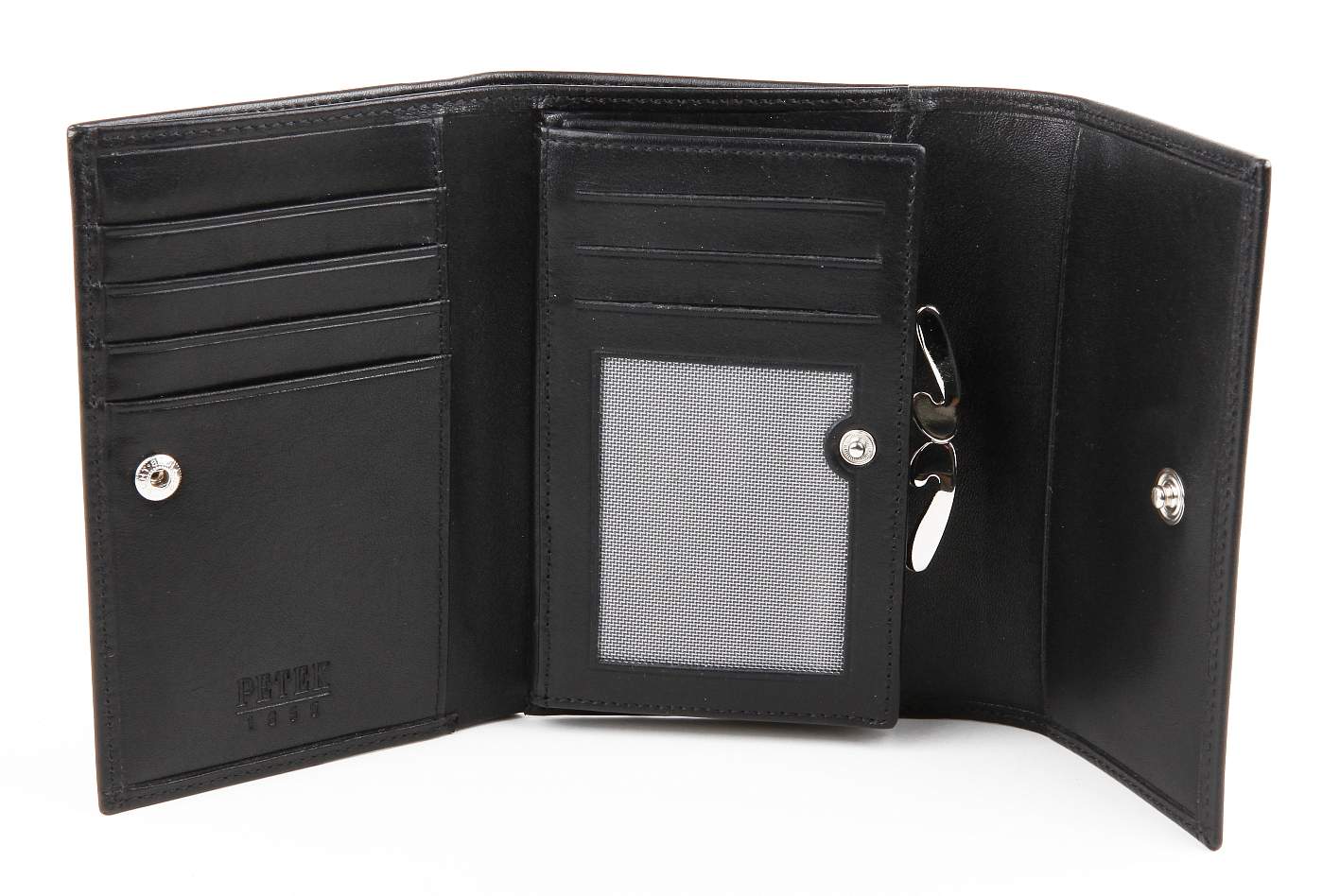 Женский кошелек Petek из натуральной кожи. Эта удобная и многофункциональная модель состоит из 2 отделений для купюр, одно из них на молнии. Для кредитных и дисконтных карточек предусмотрено 6 прорезных кармашков и 1 отделение из прозрачной сетки.