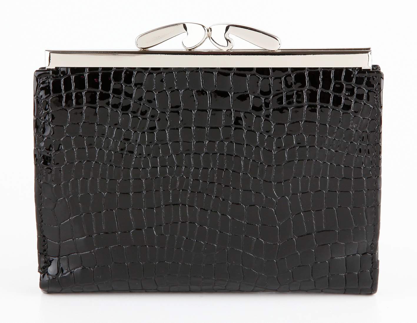 Кошелек. Раскладывается пополам, закрывается клапаном с кнопкой. Снаружи на задней стенке большая монетница из трех отделов (закрывается декоративным металлическим зажимом). Внутри: два отдела для купюр, два кармана для документов.