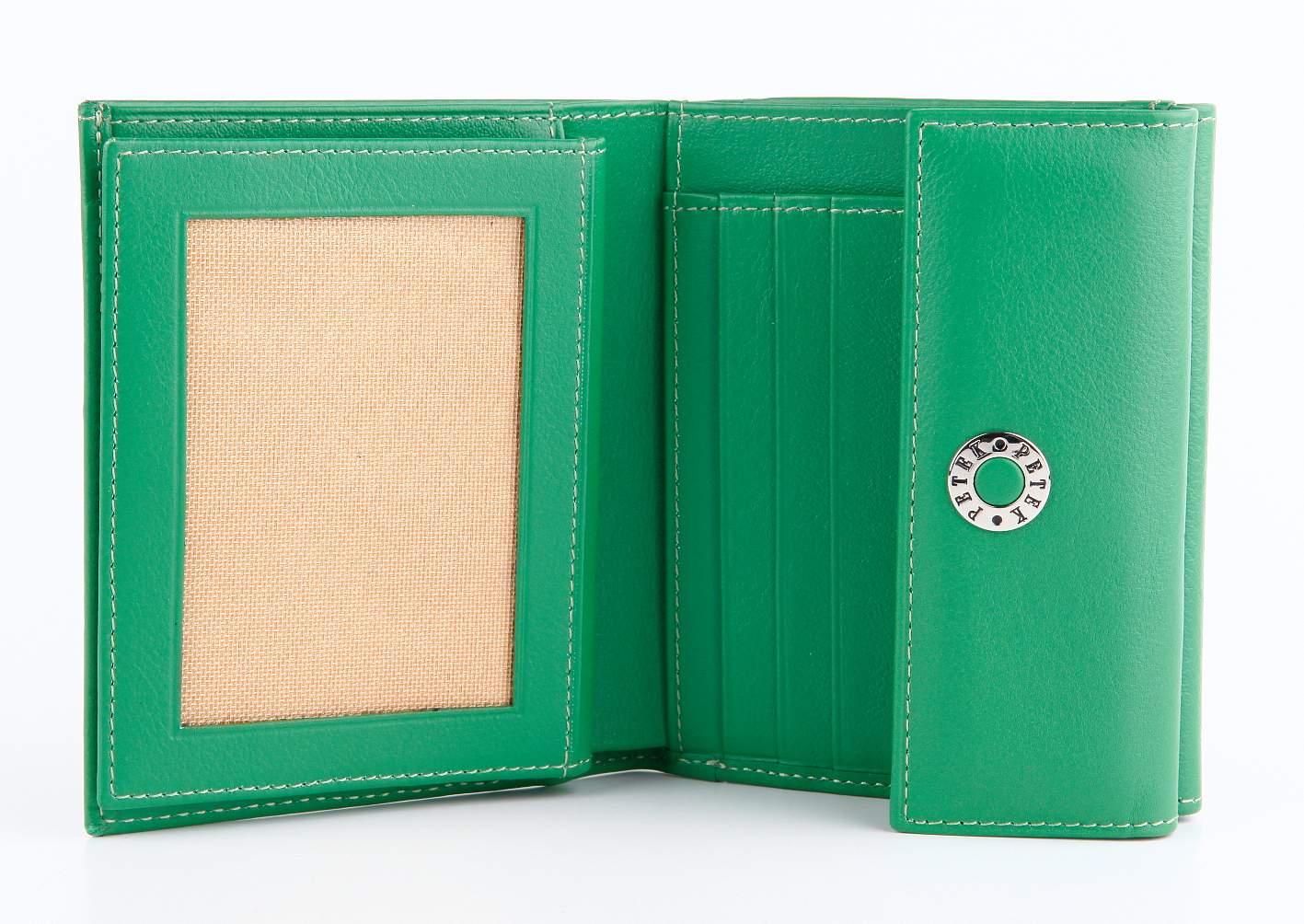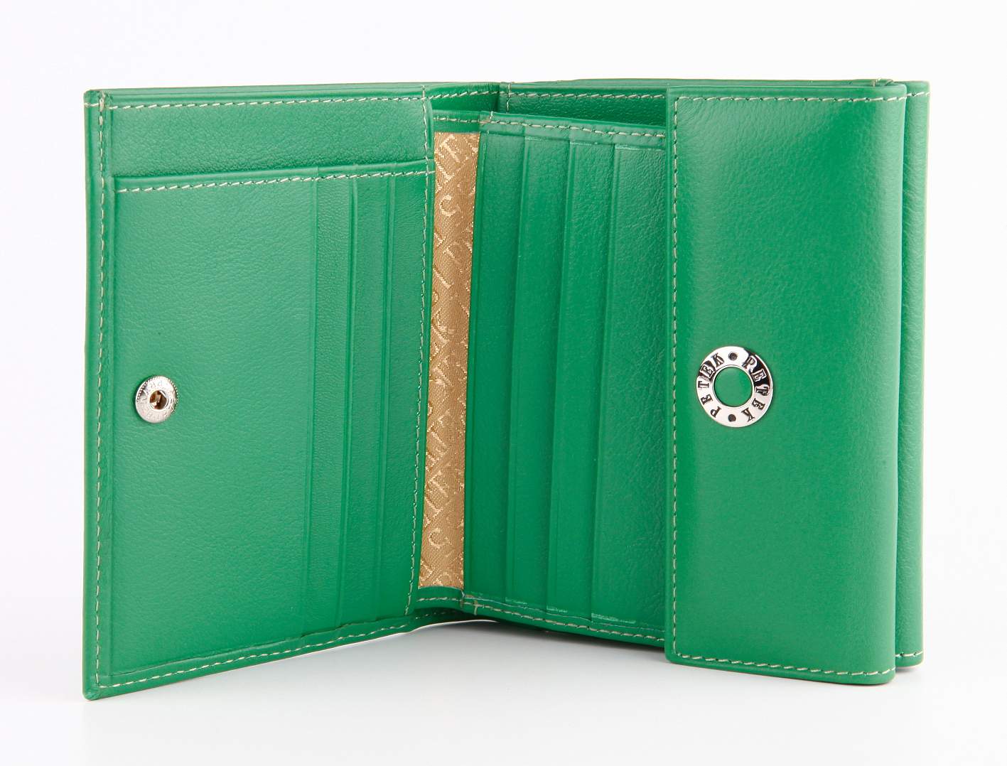 Женский элегантный кошелек Petek из натуральной кожи. Эта удобная и многофункциональная модель состоит из 1 отделения для купюр, 9 отделений для пластиковых карт, 5 карманов, 1 прозрачного отделения-сетки, с обратной стороны большая монетница на кнопке.