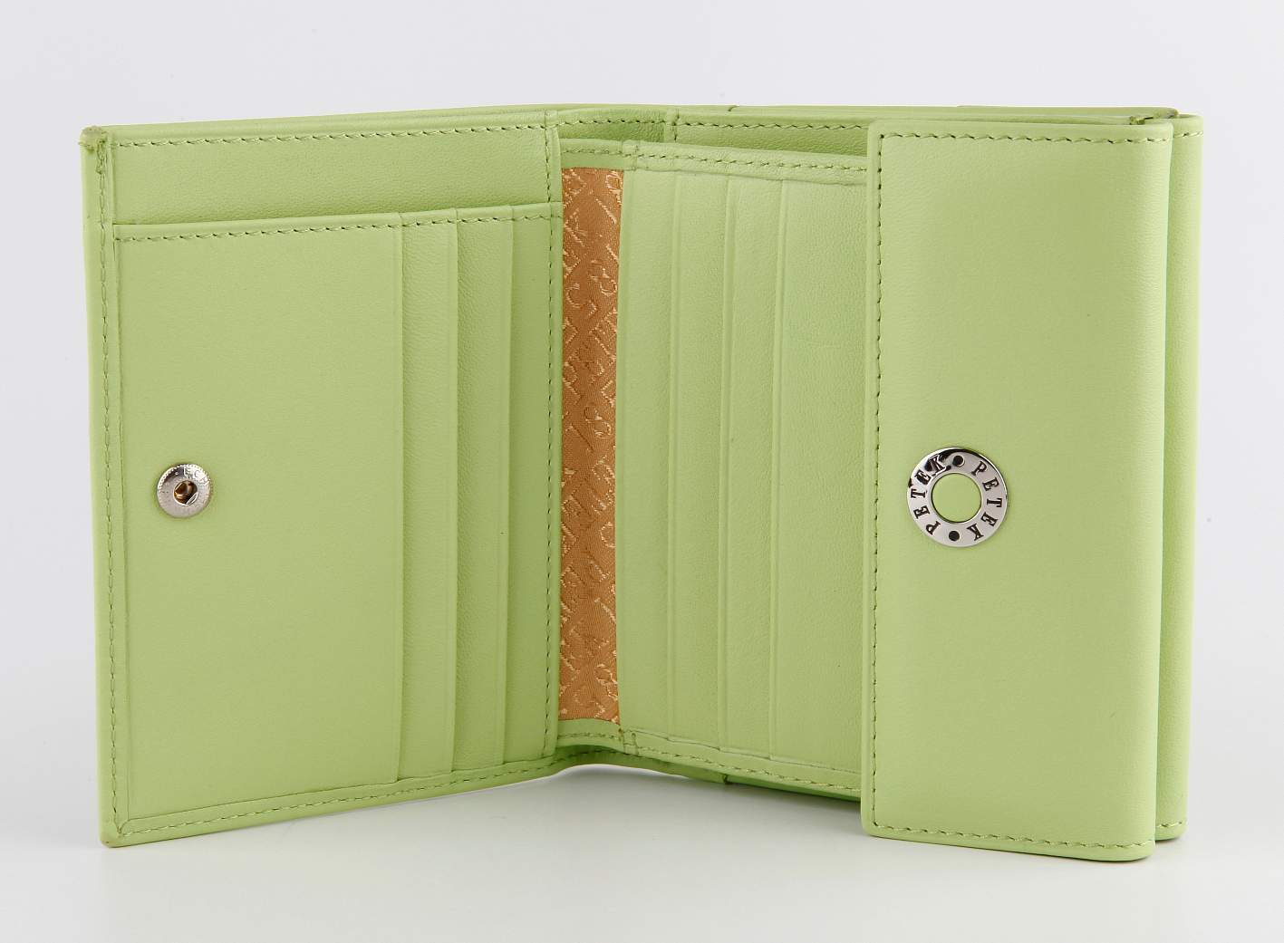 Женский элегантный кошелек Petek из натуральной кожи. Эта удобная и многофункциональная модель состоит из 1 отделения для купюр, 9 отделений для пластиковых карт, 5 карманов, 1 прозрачного отделения-сетки, с обратной стороны большая монетница на кнопке.