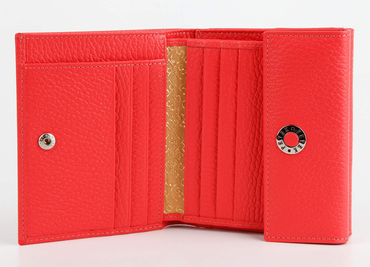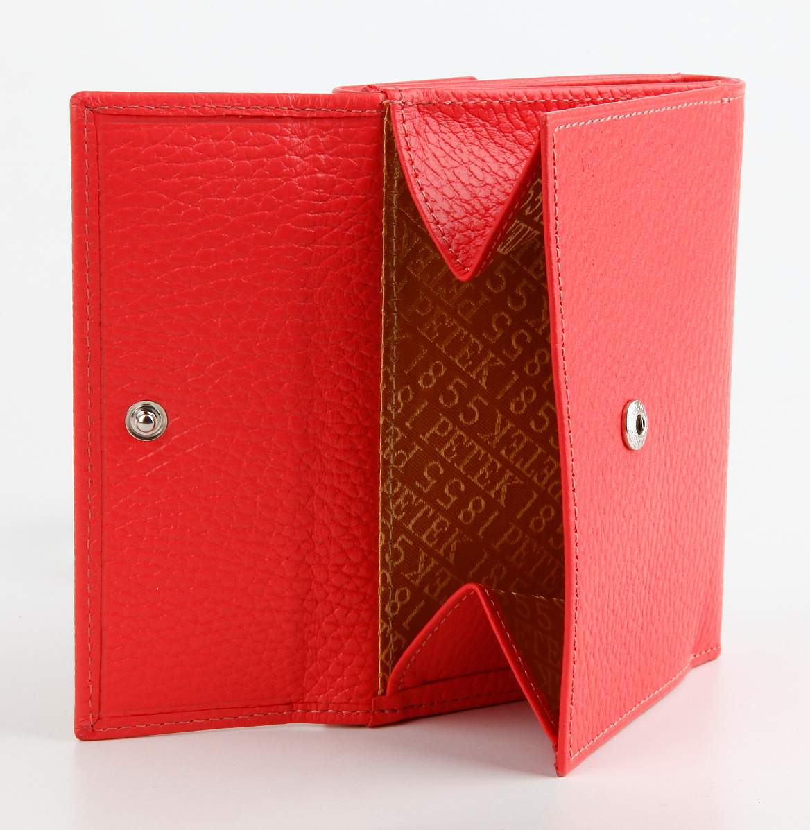 Женский элегантный кошелек Petek из натуральной кожи. Эта удобная и многофункциональная модель состоит из 1 отделения для купюр, 9 отделений для пластиковых карт, 5 карманов, 1 прозрачного отделения-сетки, с обратной стороны большая монетница на кнопке.