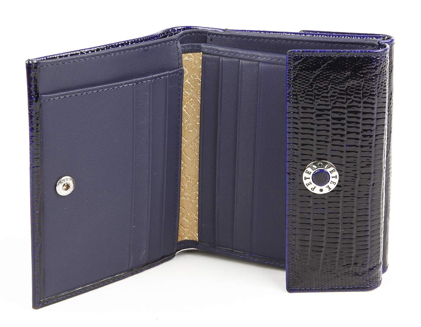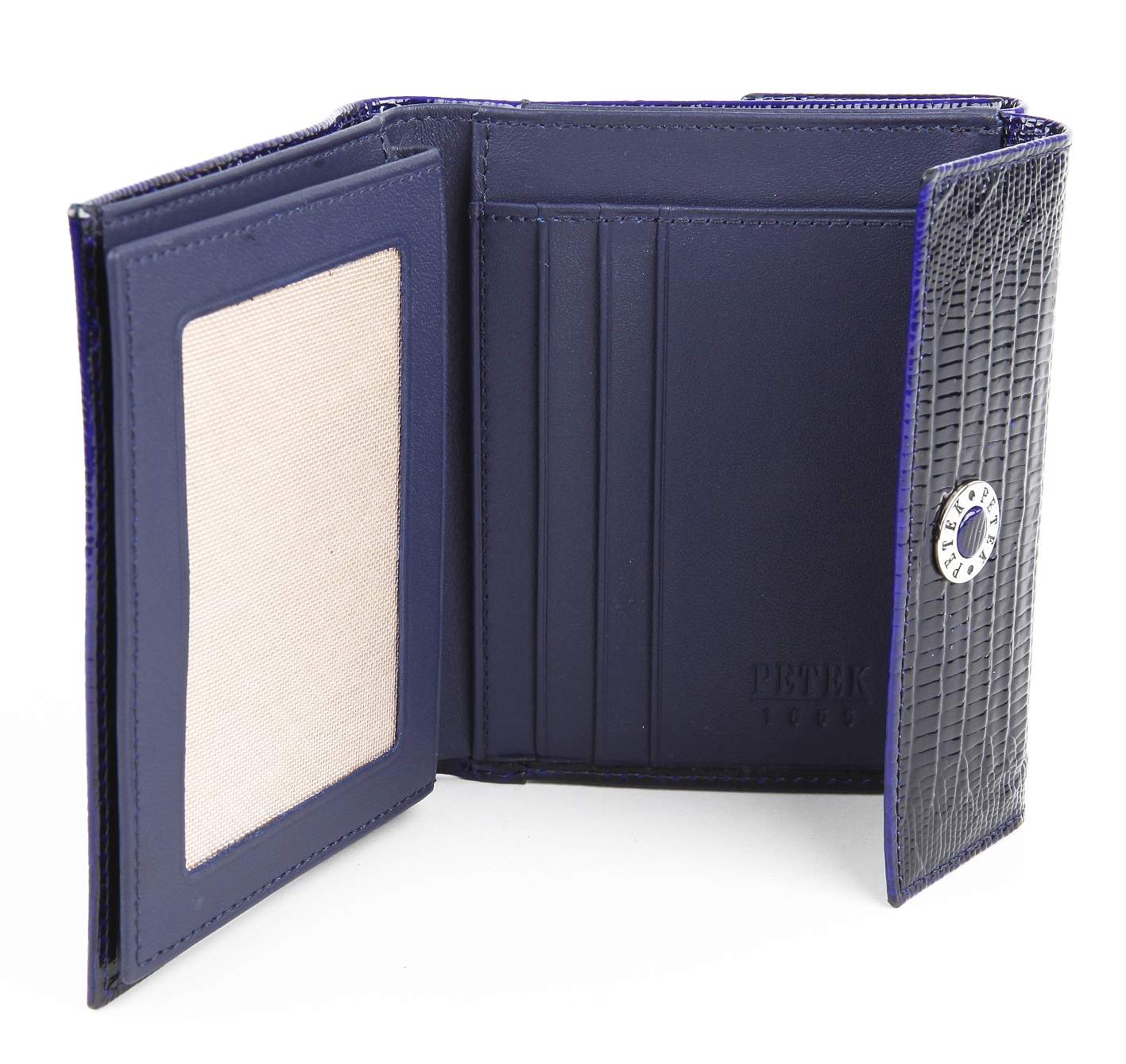 Женский элегантный кошелек Petek из натуральной кожи. Эта удобная и многофункциональная модель состоит из 1 отделения для купюр, 9 отделений для пластиковых карт, 5 карманов, 1 прозрачного отделения-сетки, с обратной стороны большая монетница на кнопке.