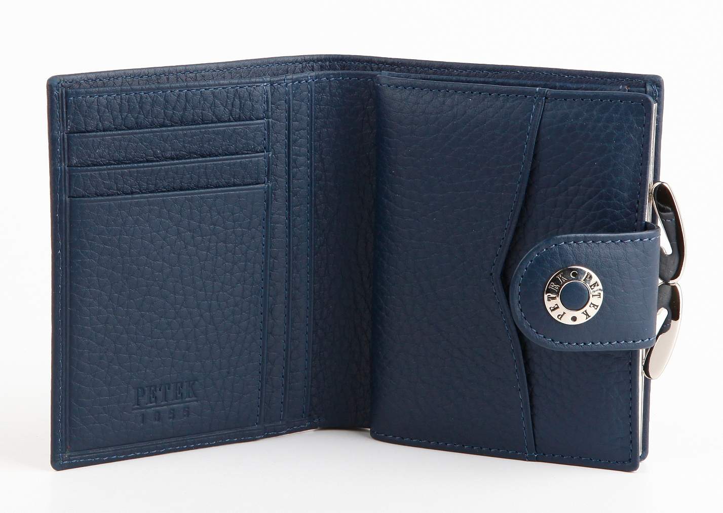 Кошелек. Раскладывается пополам, закрывается на кнопку, внутри: два больших отдела для купюр, отделение для мелочи с классическим зажимом (внутри - два отдела), три отделений для карт, три потайных кармана для документов.