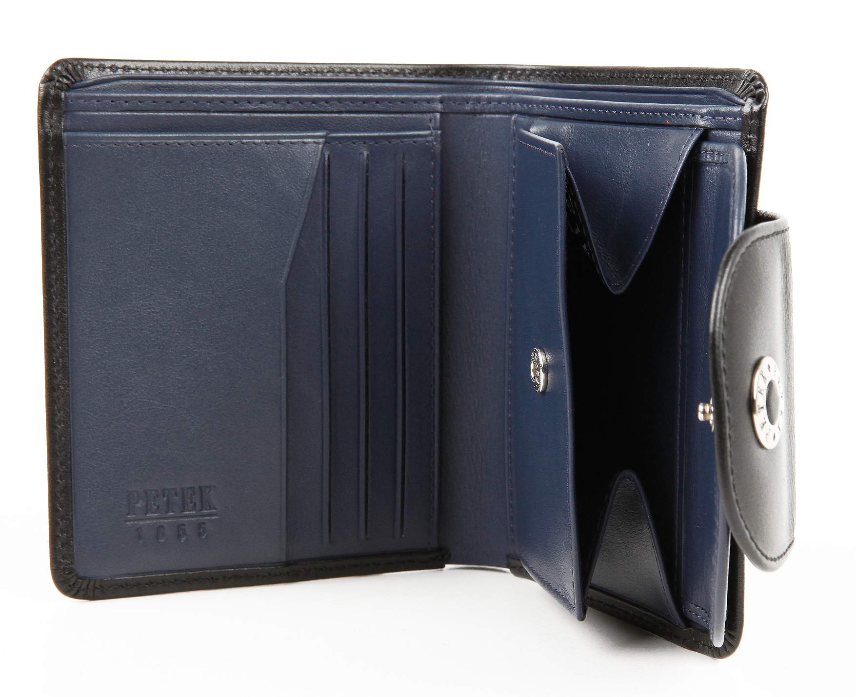 Элегантное портмоне Petek выполнено из высококачественной натуральной кожи и закрывается на кнопку. Внутри портмоне расположено четыре кармашка для кредитных или пластиковых карт, четыре потайных кармана, а также “конверт” для монет, который закрывается клапаном на застежку-кнопку. Портмоне также содержит два отделения для банкнот. Это стильный и практичный аксессуар, который подойдет для любого образа.