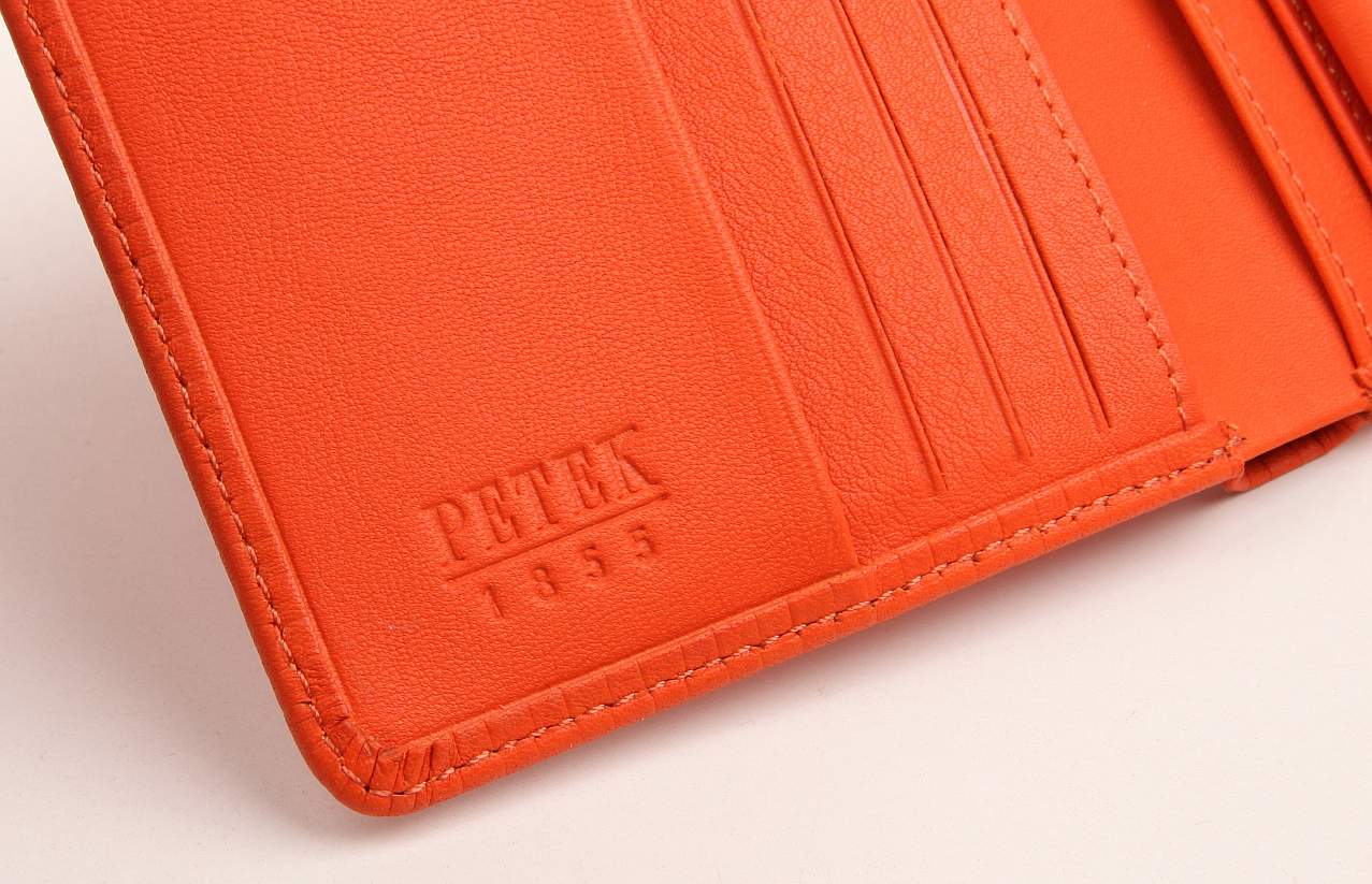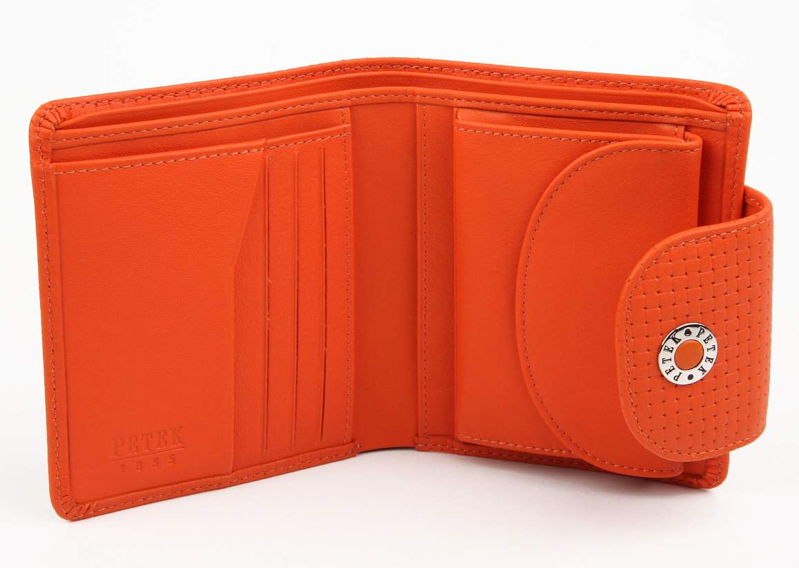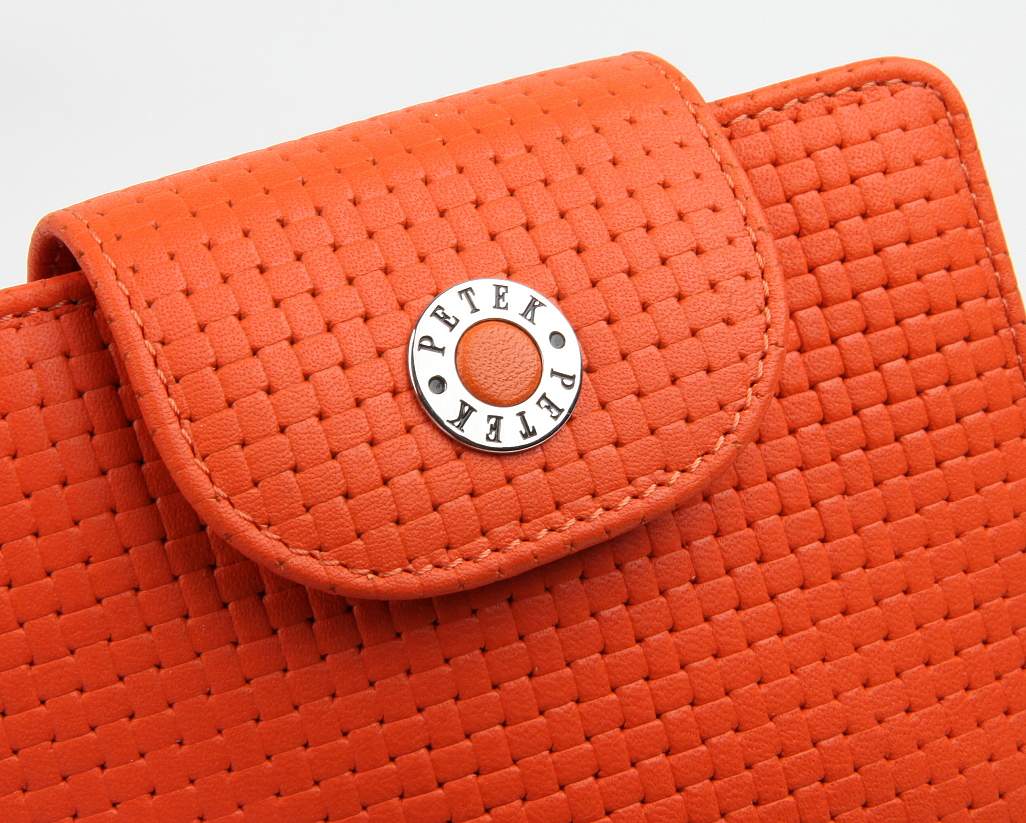 Женское элегантное портмоне Petek из натуральной кожи.Внутри: Два отделения для купюр, семь карманов для кредитных карт, отдел для мелочи внутри на кнопке.