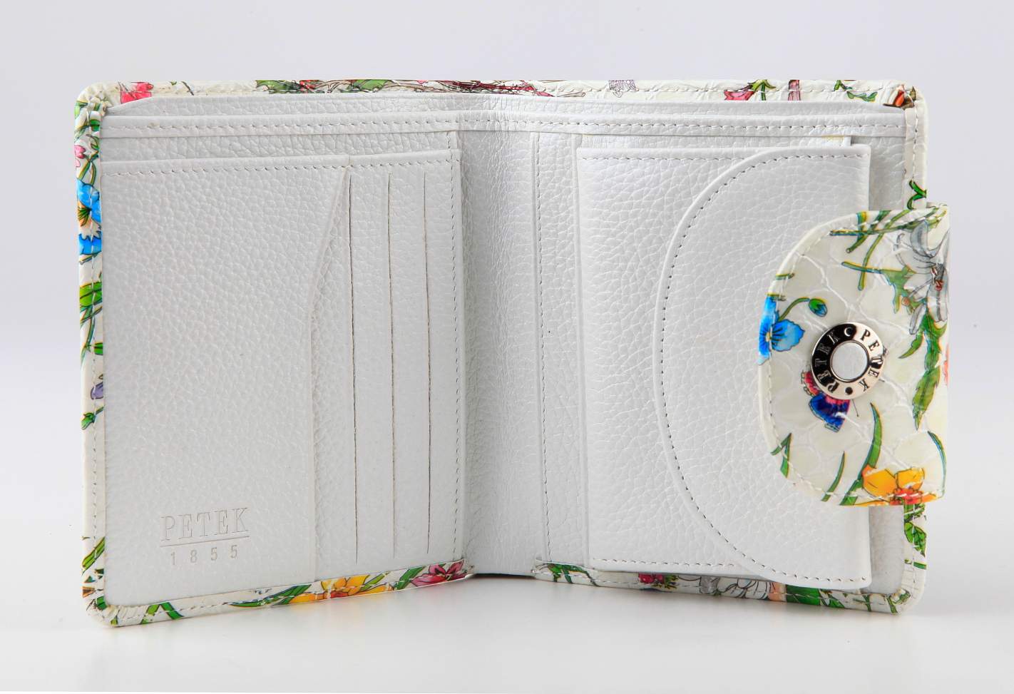 Женское элегантное портмоне Petek из натуральной кожи. Внутри: Два отделения для купюр, семь карманов для кредитных карт, отдел для мелочи внутри на кнопке.