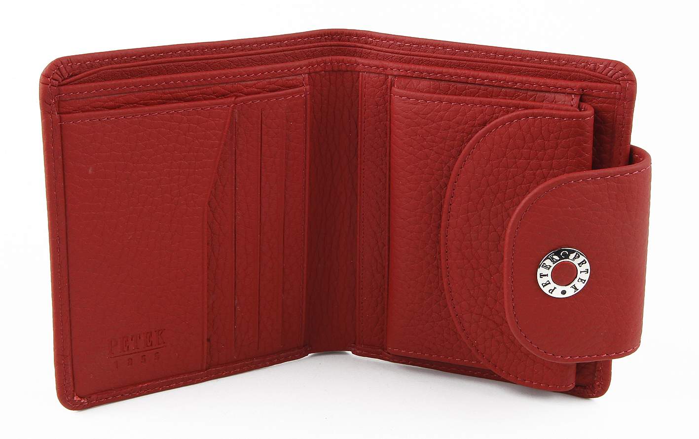 Женское элегантное портмоне Petek из натуральной кожи.Внутри: Два отделения для купюр, семь карманов для кредитных карт, отдел для мелочи внутри на кнопке.
