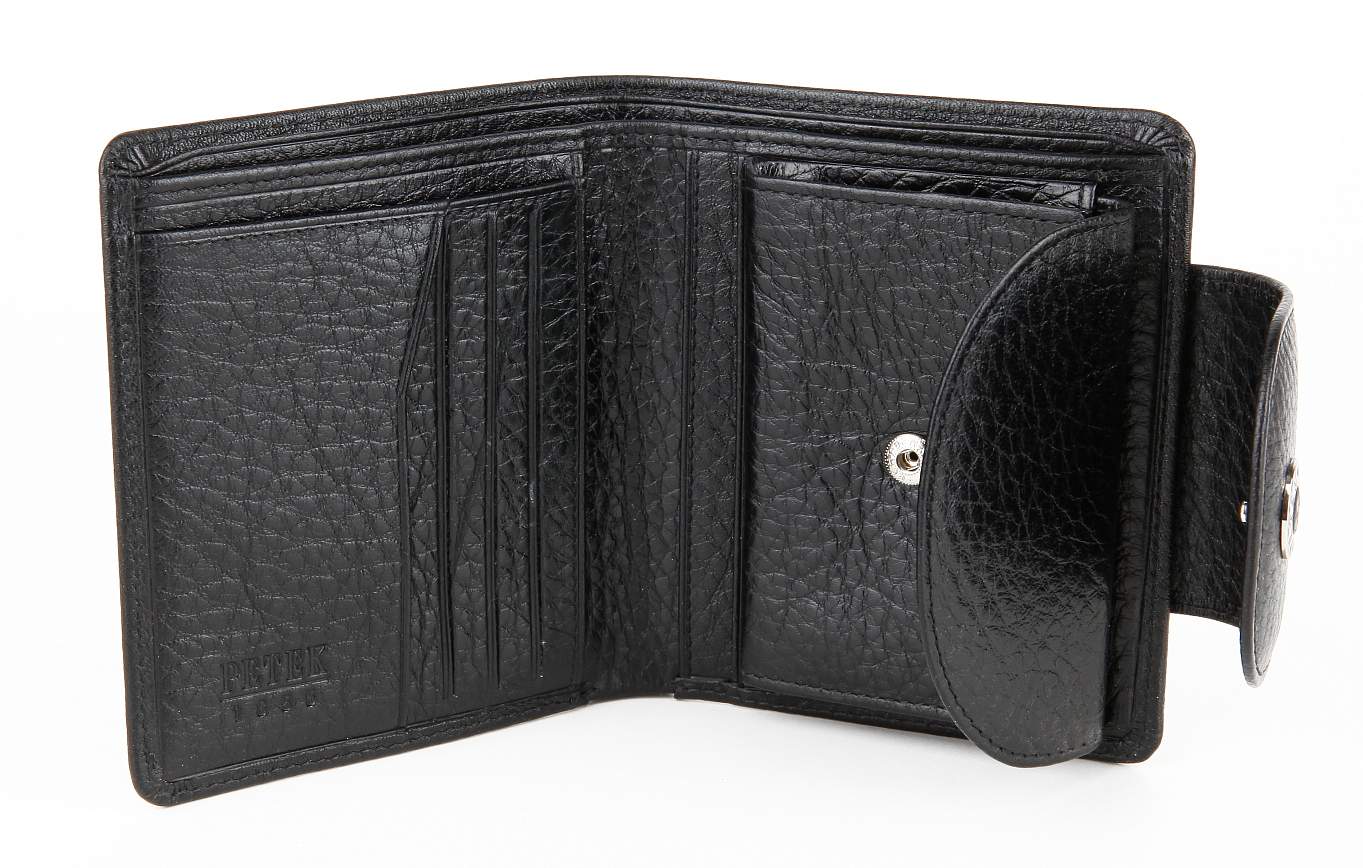 Элегантное портмоне Petek выполнено из высококачественной натуральной кожи и закрывается на кнопку. Внутри портмоне расположено четыре кармашка для кредитных или пластиковых карт, четыре потайных кармана, а также “конверт” для монет, который закрывается клапаном на застежку-кнопку. Портмоне также содержит два отделения для банкнот. Это стильный и практичный аксессуар, который подойдет для любого образа.