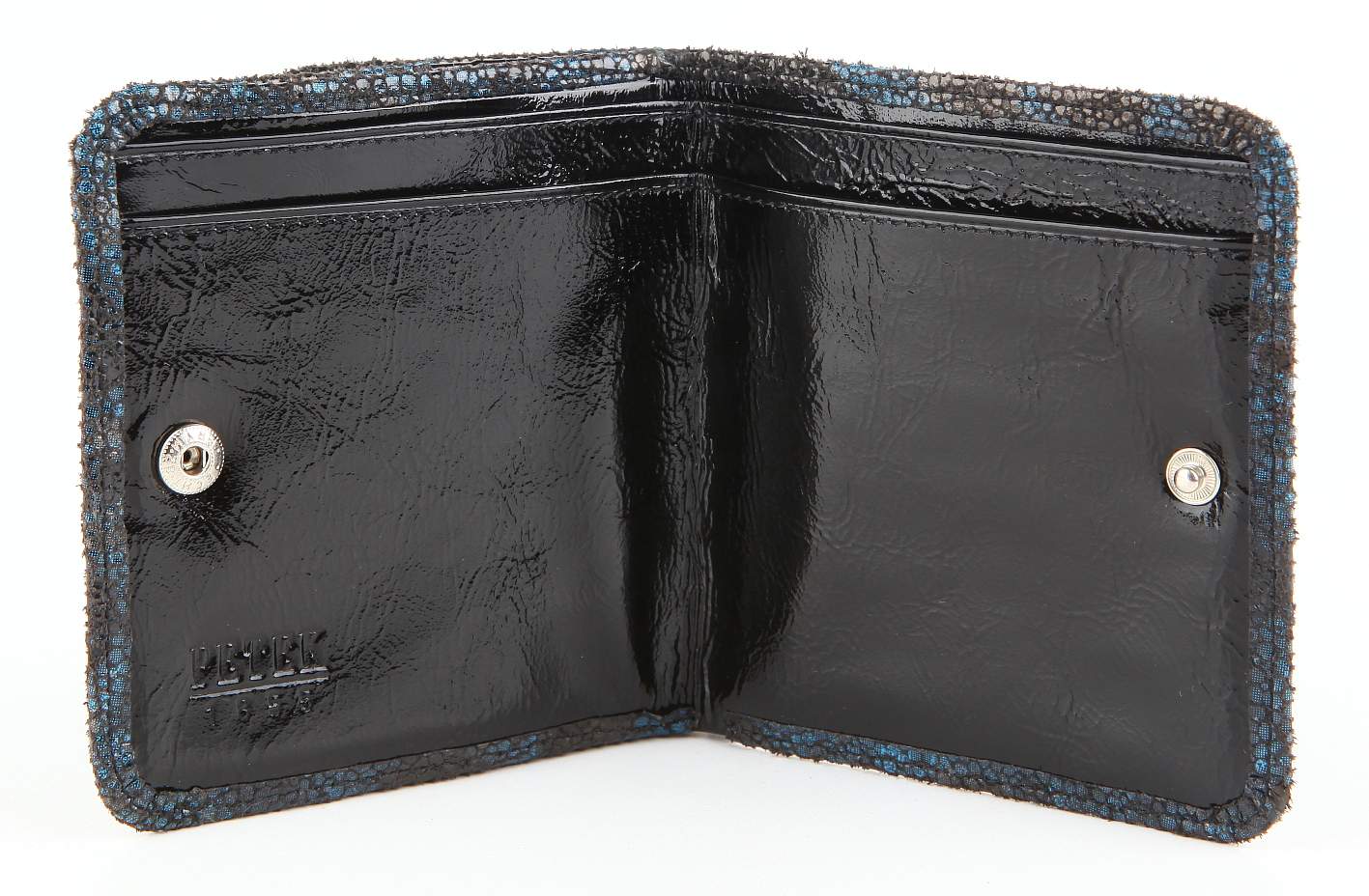 Мужское портмоне Petek из натуральной кожи. Компактная небольшая модель, которая легко поместится в карман пиджака или брюк. Внутри: два отделения для купюр, отделение для монет. Портмоне закрывается на кнопку.
