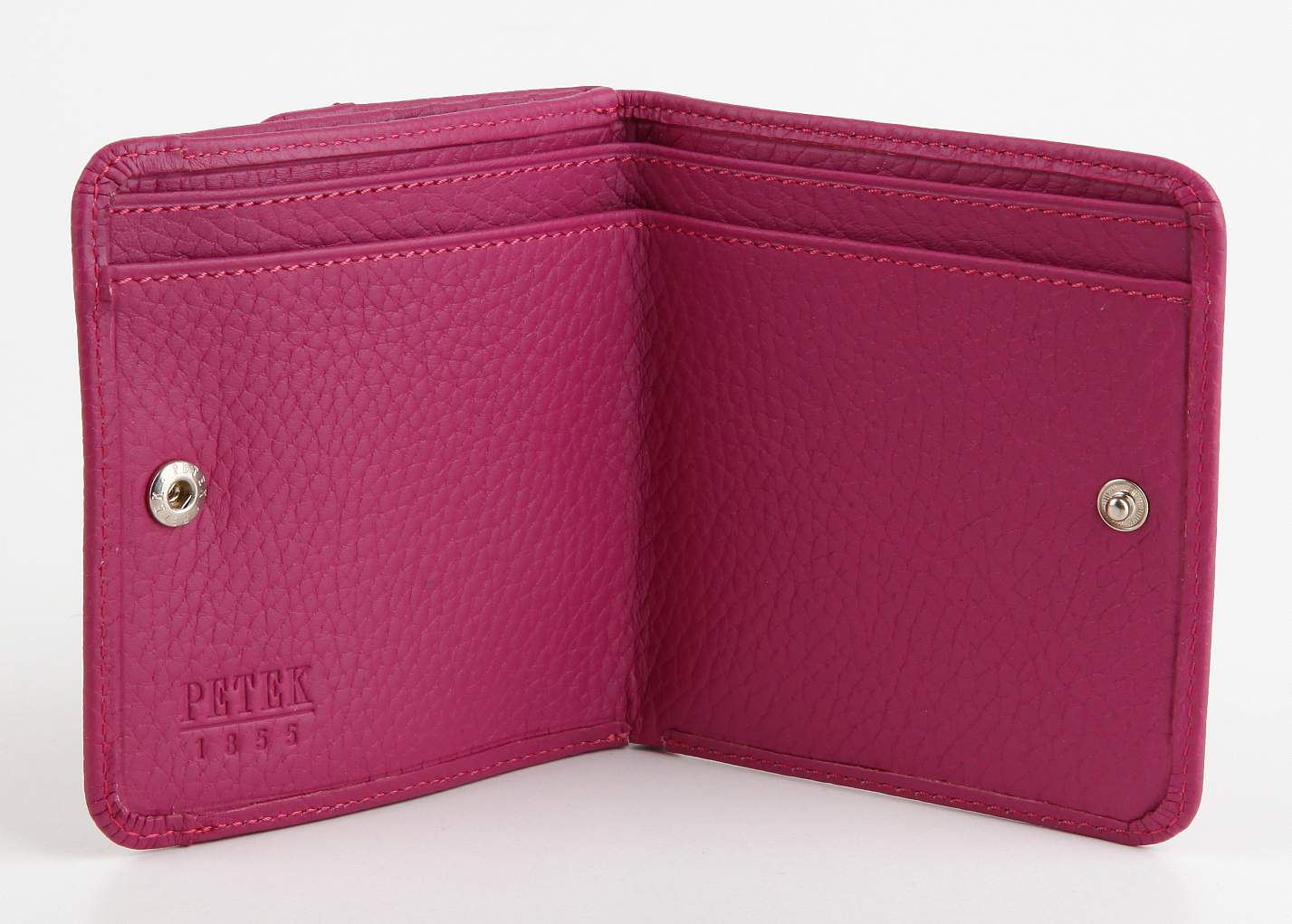 Мужское портмоне Petek из натуральной кожи. Компактная небольшая модель, которая легко поместится в карман пиджака или брюк. Внутри: два отделения для купюр, отделение для монет. Портмоне закрывается на кнопку.