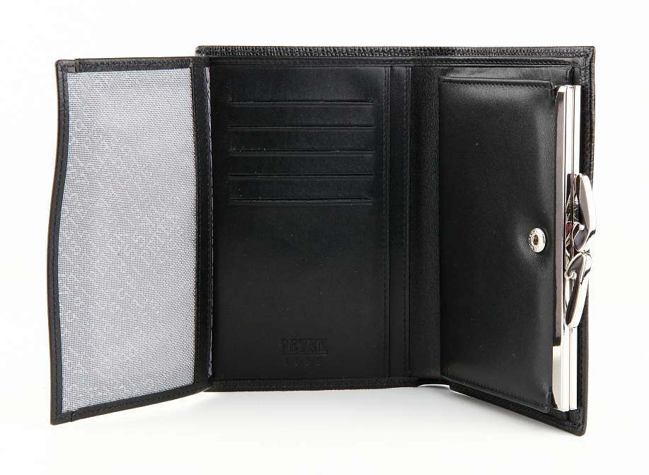 Портмоне Petek изготовлено из натуральной кожи высочайшего качества. Внутри портмоне имеется одно отделение для банкнот, два кармана и пять карманов для визитных и кредитных карточек. Также в портмоне имеются два отделения-сетки для хранения мелких предметов. Снаружи портмоне располагается отделение для монет на рамочном замке. Это стильное и функциональное портмоне будет незаменимым аксессуаром для каждого.