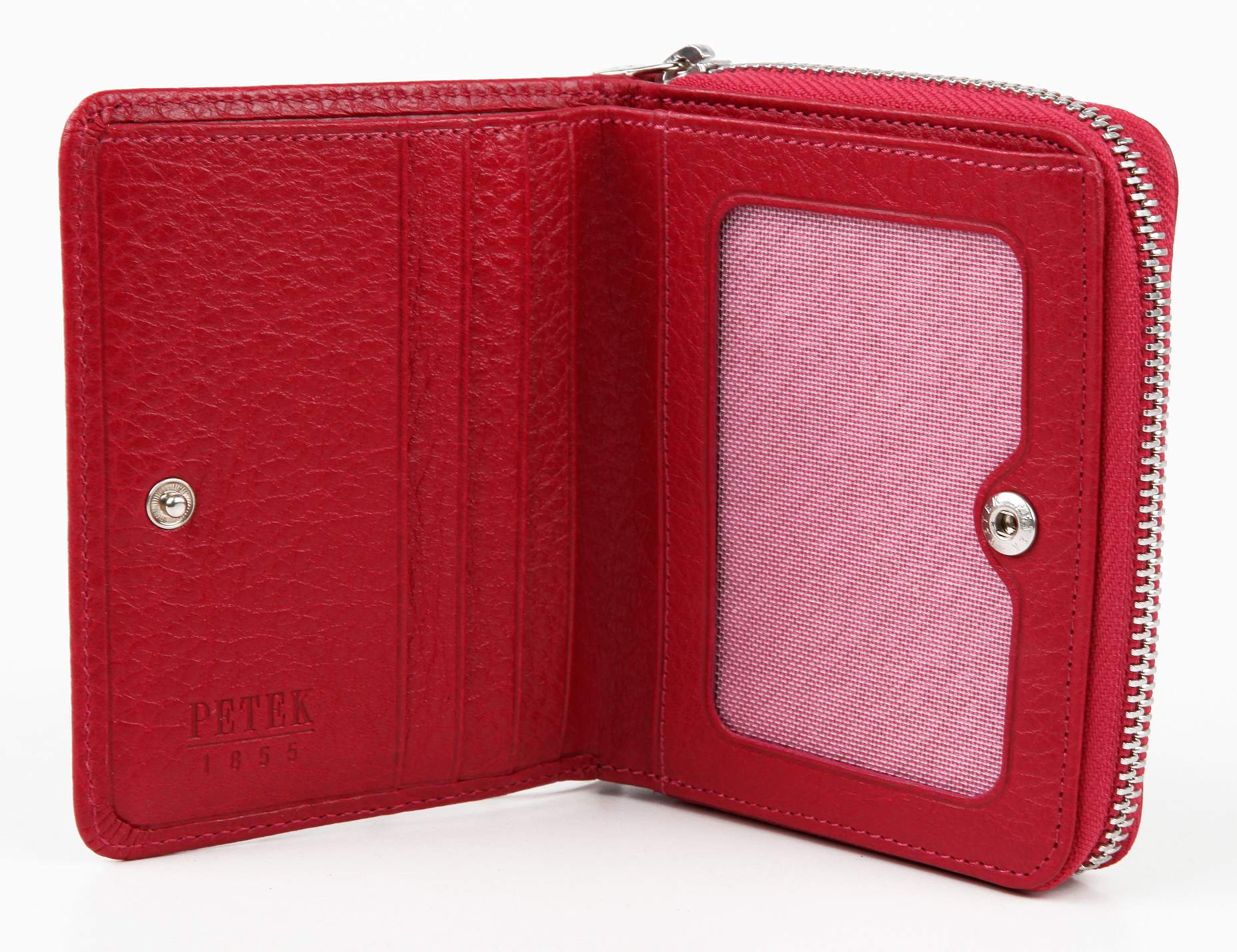 Женский элегантный кошелек Petek из натуральной кожи.Отделение для купюр. Отделение для мелочи. 6 отделений для карточек. 1 дополнительное отделение. Закрывается на кнопку и на молнию.