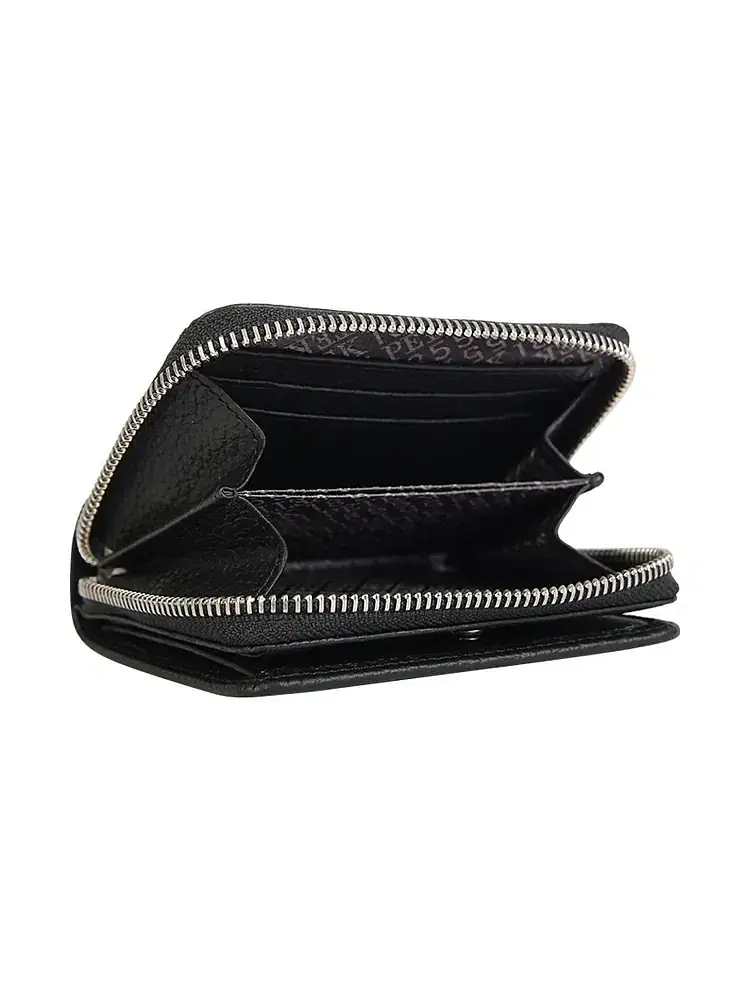 Женский элегантный кошелек Petek из натуральной кожи черного цвета с гладкой фактурой. Отделение для купюр. Отделение для мелочи. 6 отделений для карточек. 1 дополнительное отделение. Закрывается на кнопку и на молнию.