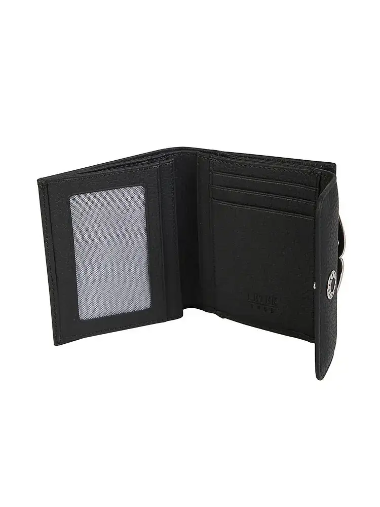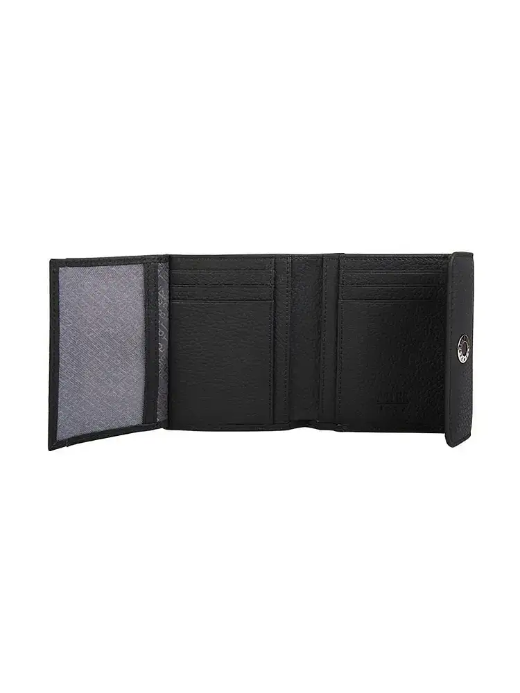 Элегантный кошелек из натуральной кожи Petek закрывается на кнопку. Внутри он разделен на два отсека. Первый отсек закрывается клапаном на застежку-кнопку и содержит одно отделение для купюр, четыре накладных кармана (два из которых имеют “окошко” из прозрачного пластика), шесть вертикальных кармашков для визиток и кредитных карт, а также два потайных кармана. Второй отсек закрывается на замок-фермуар и используется как кармашек для монет.