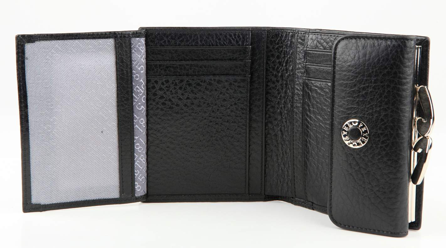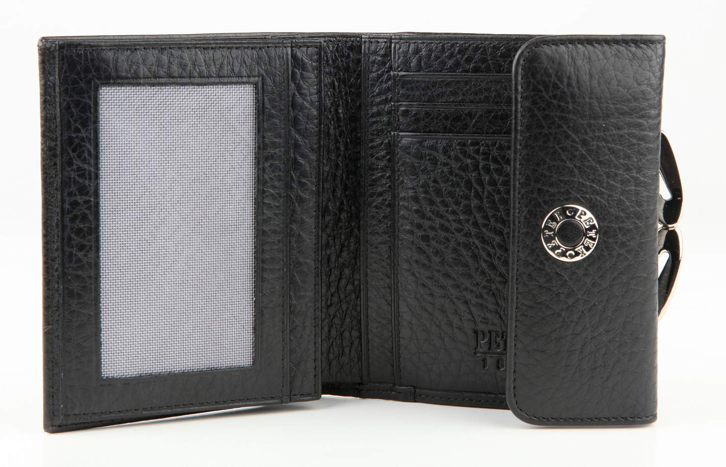Женский элегантный кошелек Petek из натуральной кожи. Внутри: отделение для купюр, отделение для монет с металлической фурнитурой, 6 отделений для кредитных карточек, 2 отделения-сеточки.