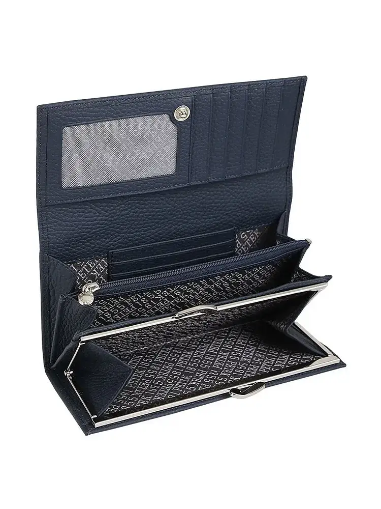 Элегантный классический кошелек из натуральной кожи от бренда Petek отличается превосходным качеством и стильным дизайном. Он имеет два просторных отделения для банкнот, карман на молнии для монет и восемь слотов для кредитных карт. Кроме того, кошелек оснащен специальным отделением для хранения мелочи, которое называется “поцелуйчиком”. Этот аксессуар станет прекрасным дополнением к образу любого, ценящего комфорт и элегантность в своих аксессуарах.
