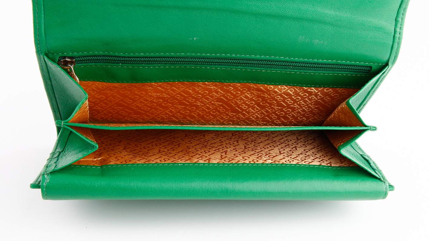 Женский элегантный кошелек Petek из натуральной кожи. Два отделения для купюр, отделение на молнии, шесть карманов для кредиток, два окошка-сеточки.