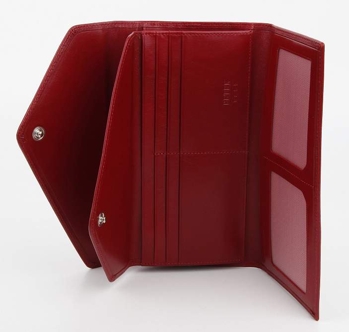 Женский элегантный кошелек Petek из натуральной кожи. Два отделения для купюр, отделение на молнии, шесть карманов для кредиток, два окошка-сеточки.