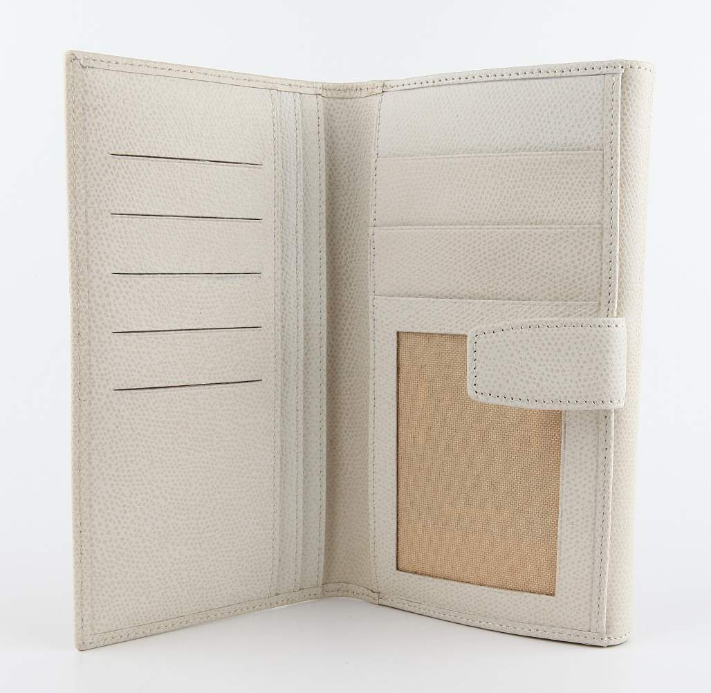 Кошелек: на задней стенке откидное отделение, в котором на левой стенке находится три отделения: пять отделений для пластиковых и визитных карт, на правой стенке - один отделение: три отделения для пластиковых карт.