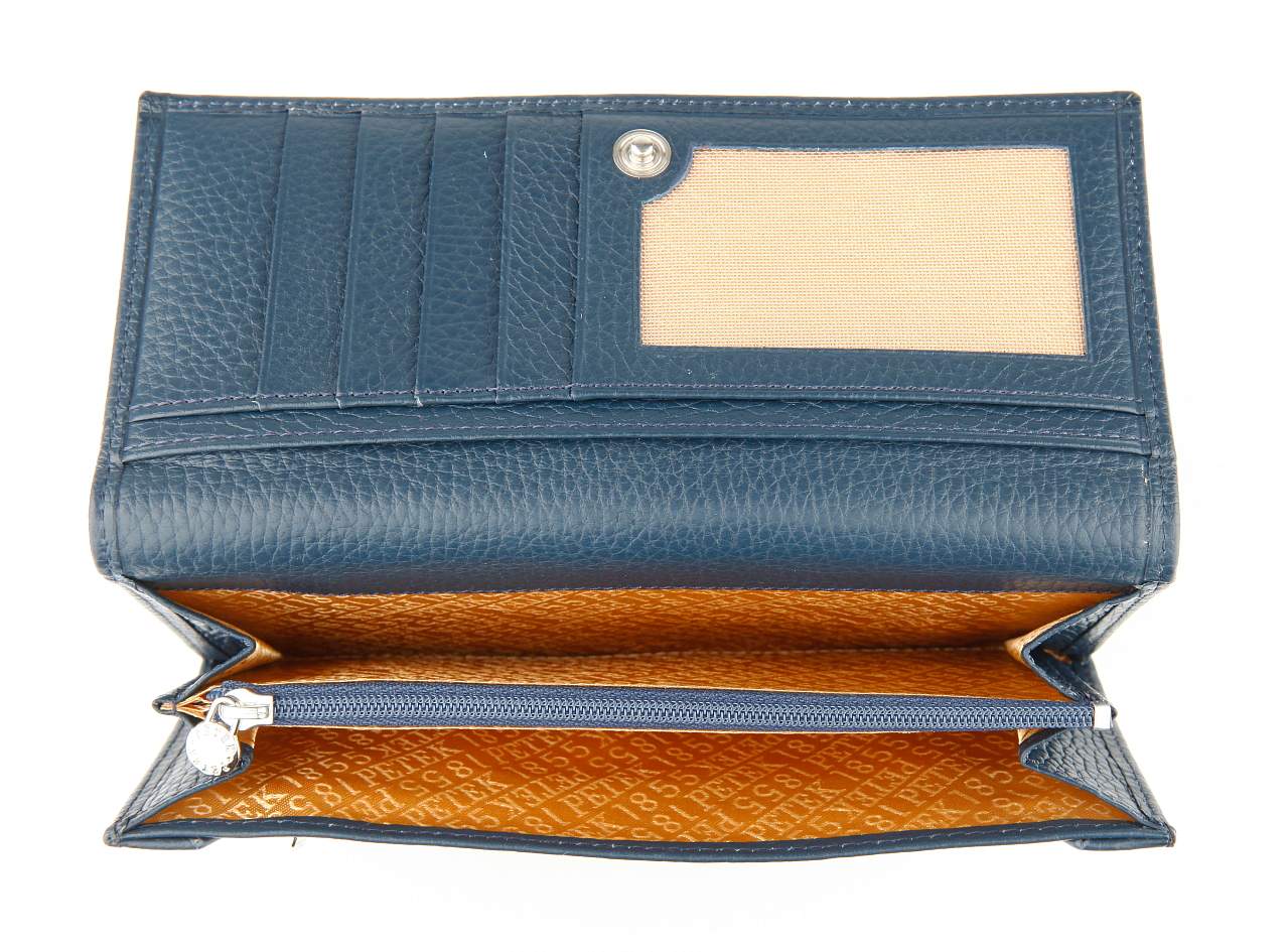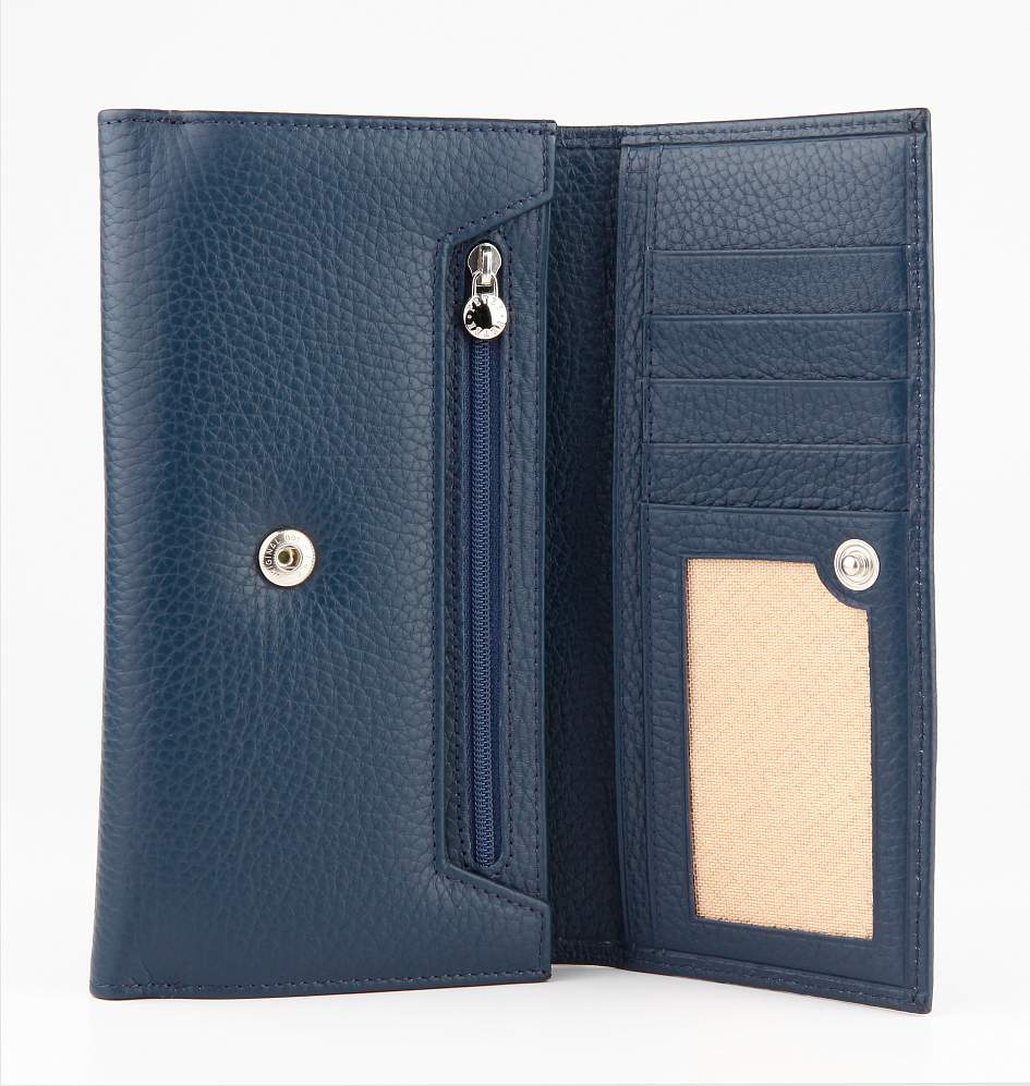 Кошелек: на задней стенке откидное отделение, в котором на левой стенке находится три отделения: пять отделений для пластиковых и визитных карт, на правой стенке - один отделение: три отделения для пластиковых карт.