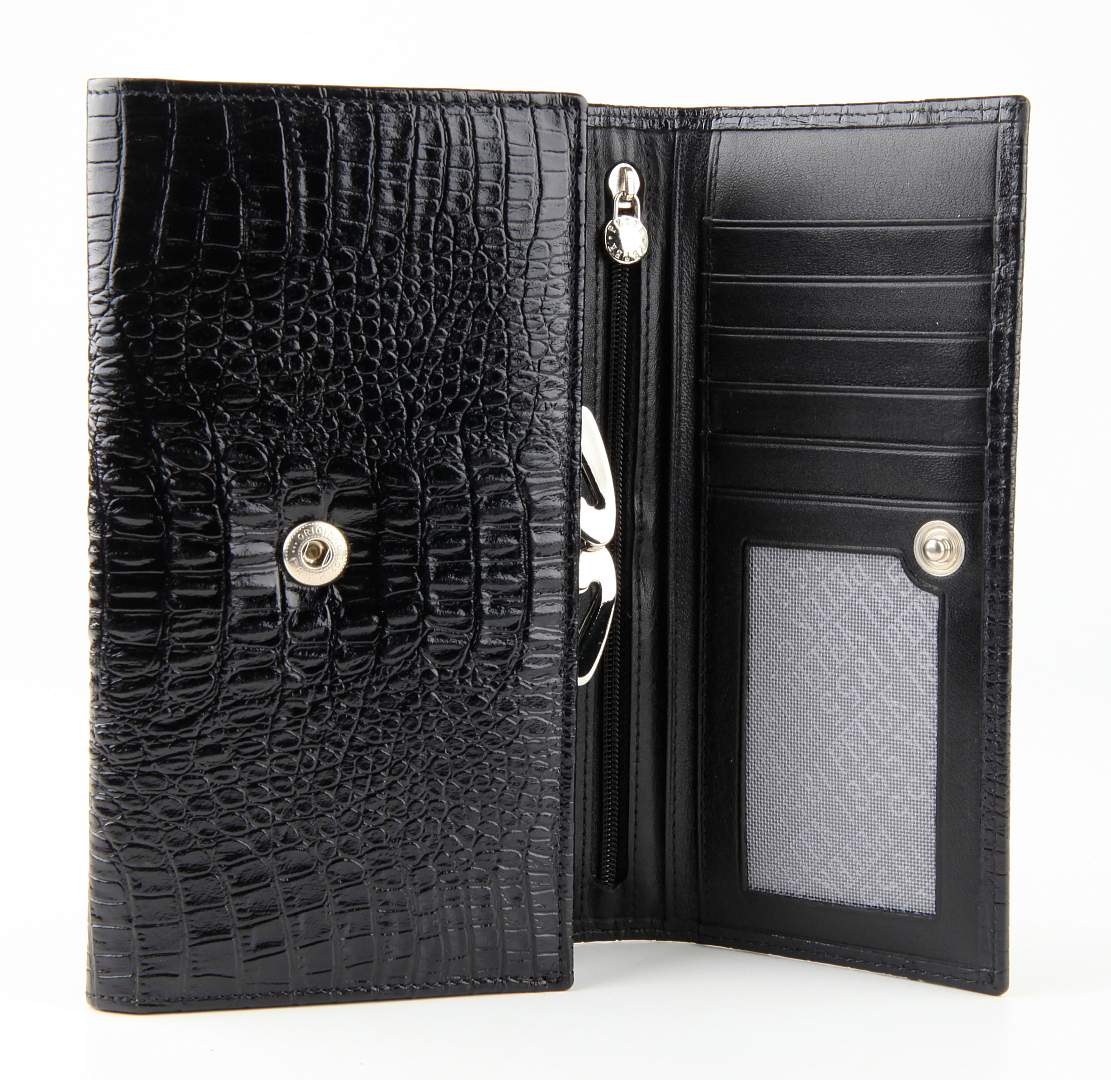 Женский элегантный кошелек Petek из натуральной кожи. Внутри: 4 отделения для купюр, отделение на молнии, 6 карманов для кредитных карт, отделение для монет с металлической фурнитурой- "поцелуйчик".