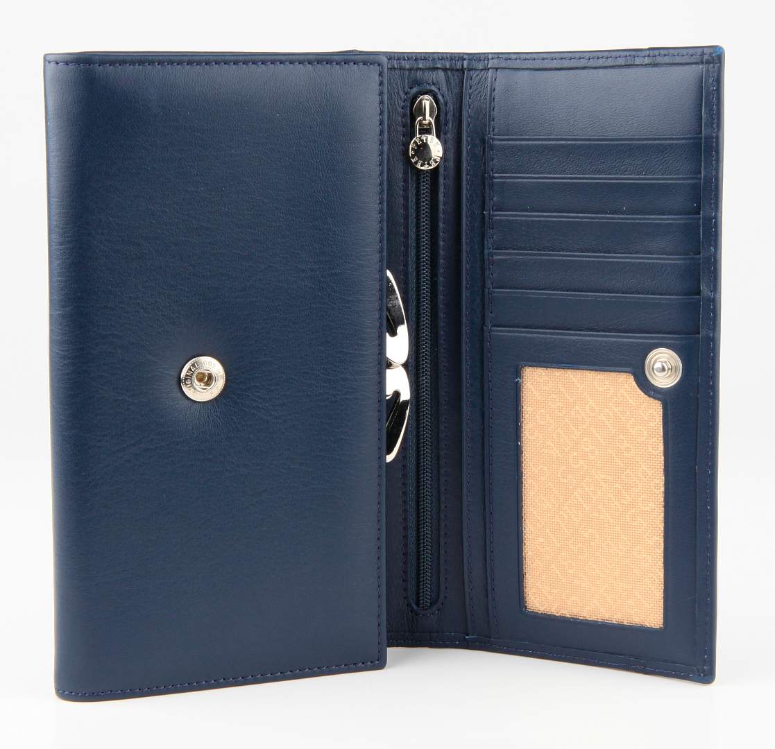Женский элегантный кошелек Petek из натуральной кожи. Внутри: 4 отделения для купюр, отделение на молнии, 6 карманов для кредитных карт, отделение для монет с металлической фурнитурой- "поцелуйчик".