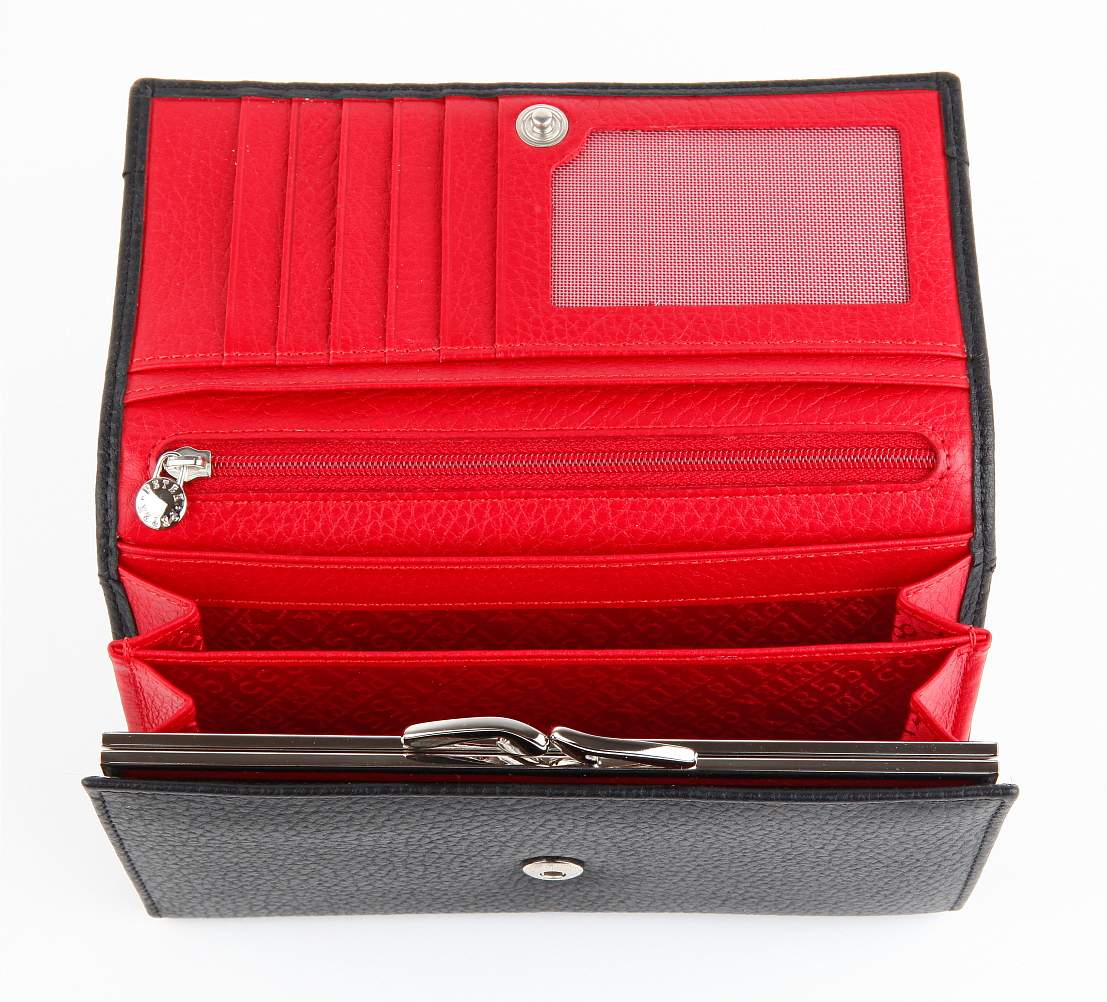Женский элегантный кошелек Petek из натуральной кожи. Внутри: 4 отделения для купюр, отделение на молнии, 6 карманов для кредитных карт, отделение для монет с металлической фурнитурой- "поцелуйчик".