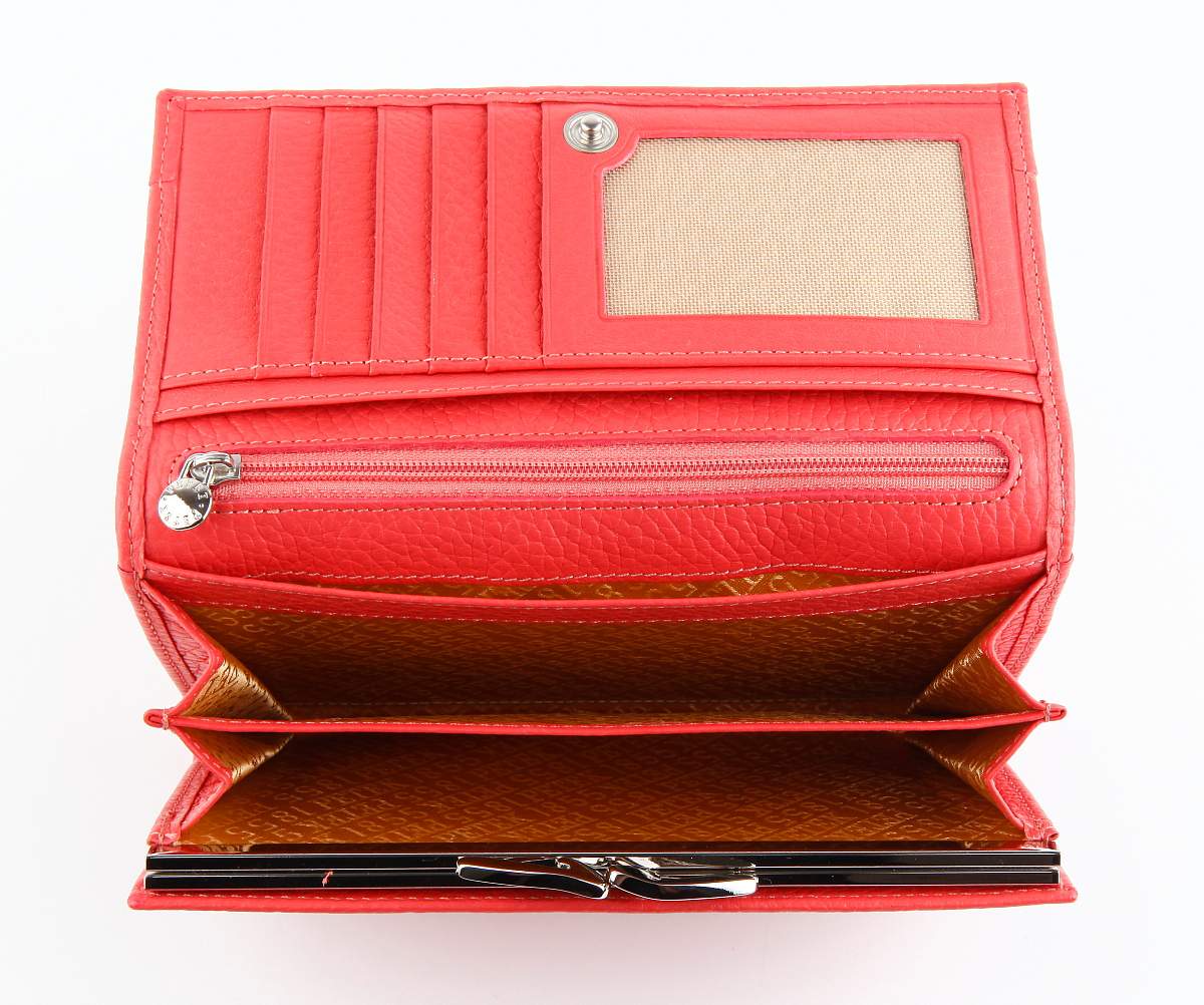 Женский элегантный кошелек Petek из натуральной кожи. Внутри: 4 отделения для купюр, отделение на молнии, 6 карманов для кредитных карт, отделение для монет с металлической фурнитурой- "поцелуйчик".