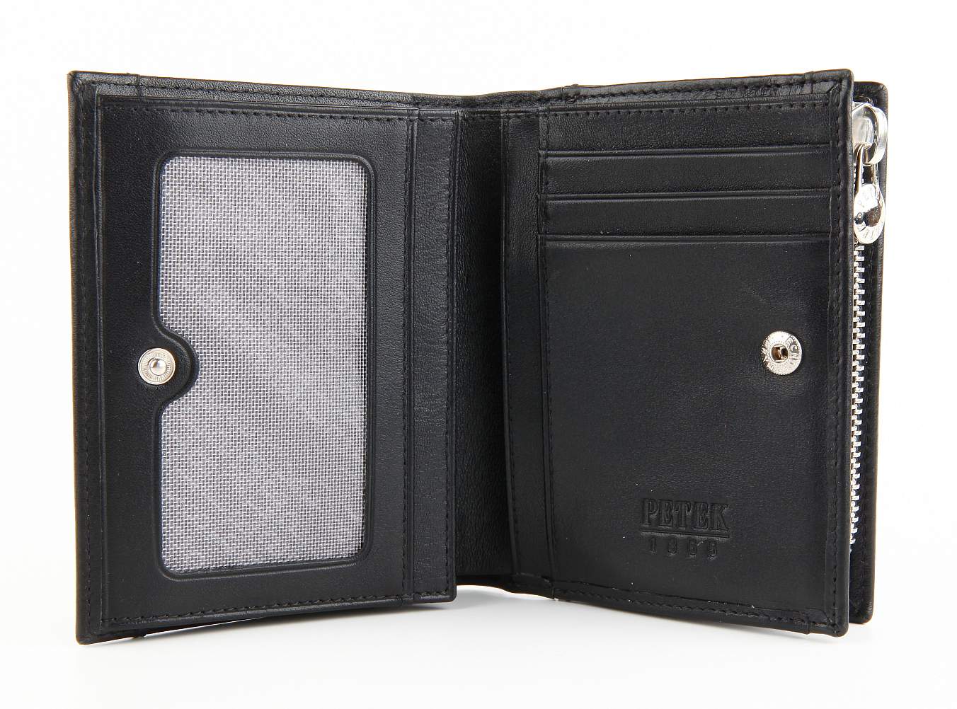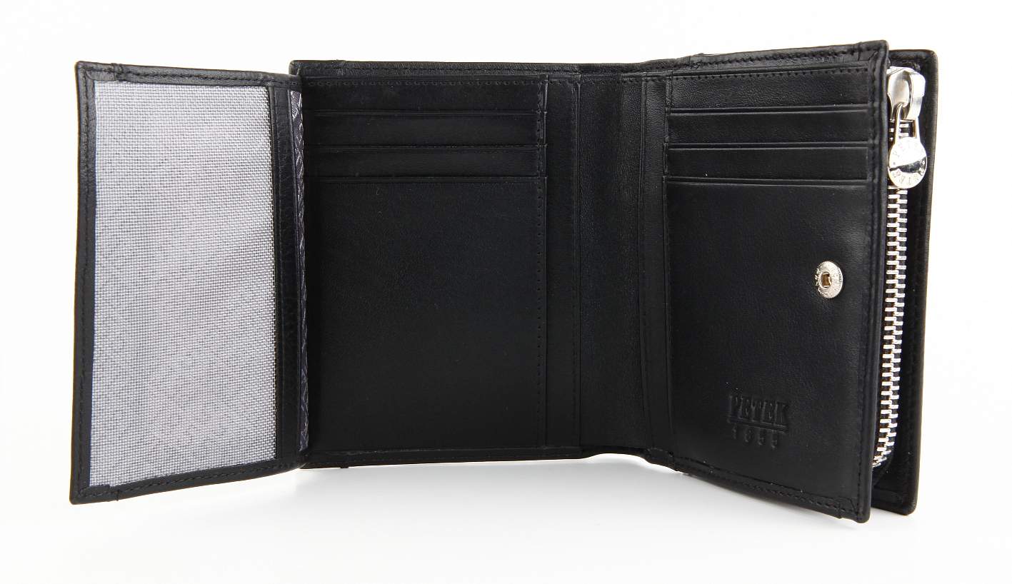 Женский элегантный кошелек Petek из натуральной кожи. Внутри: одно отделение для купюр, шесть отделений для пластиковых карт, монетница на молнии, шесть дополнительных отделений.