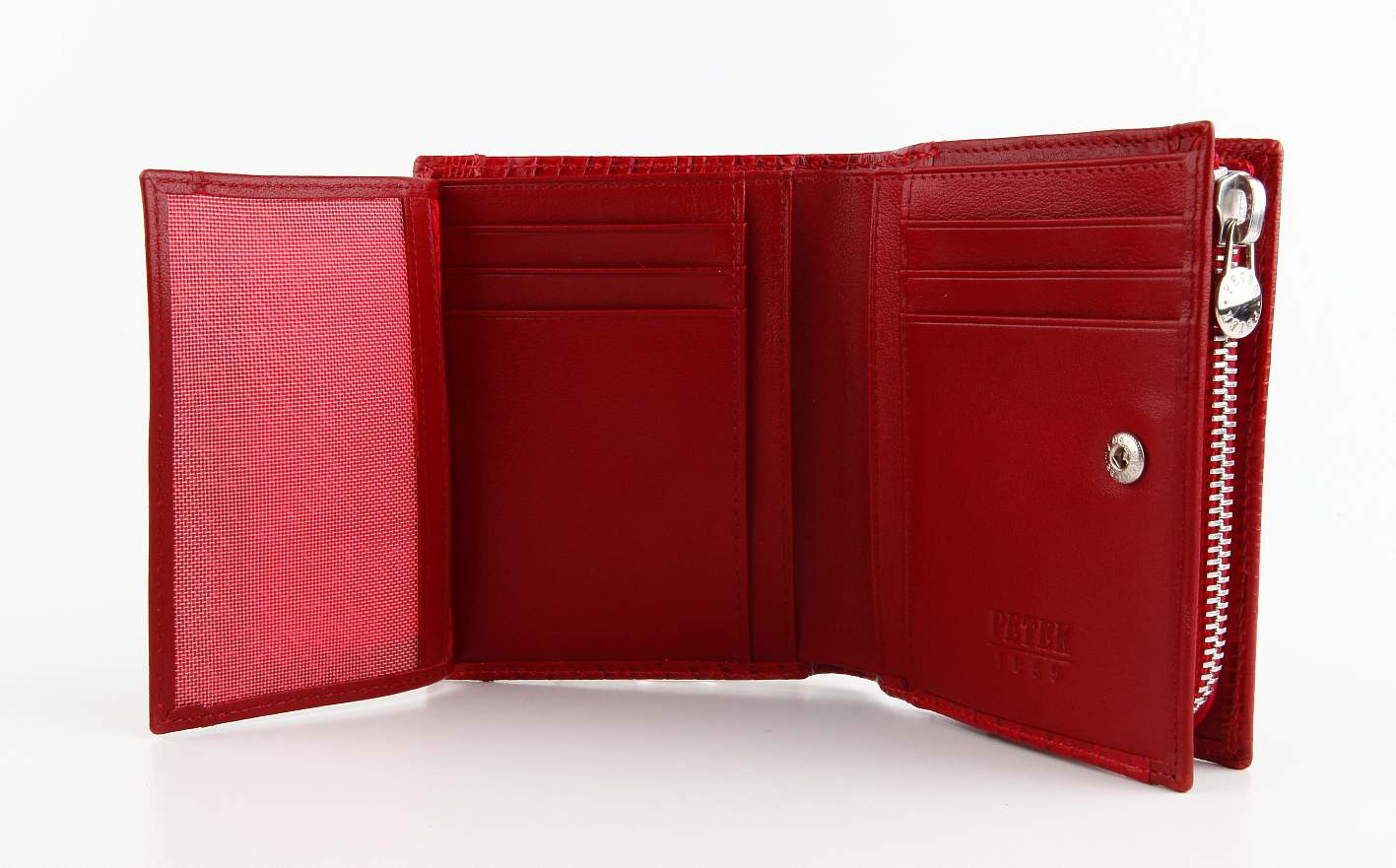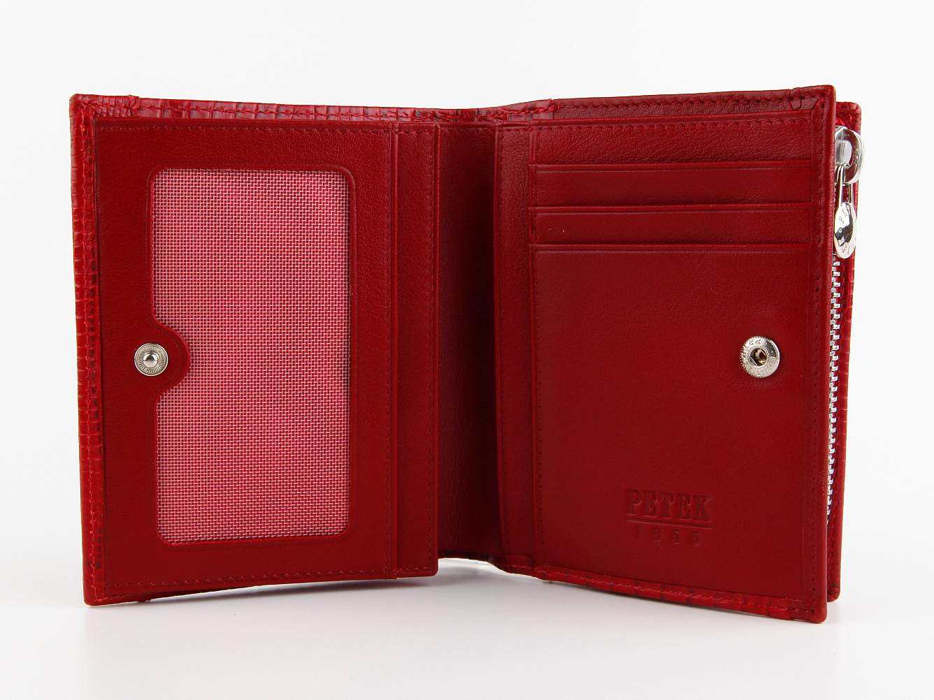 Женский элегантный кошелек Petek из натуральной кожи. Внутри: одно отделение для купюр, шесть отделений для пластиковых карт, монетница на молнии, шесть дополнительных отделений.