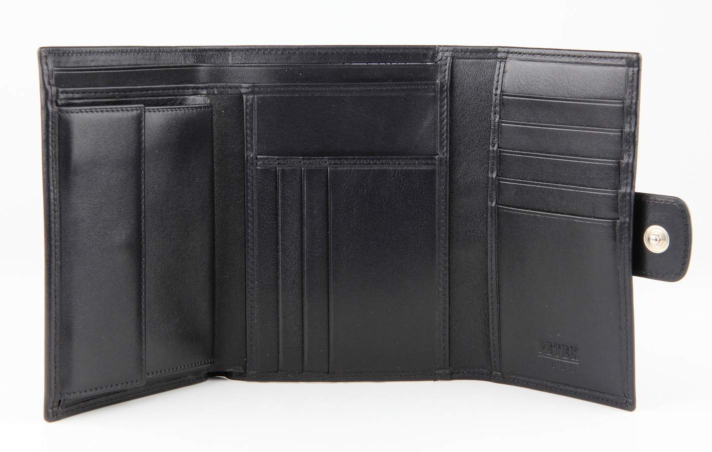Женский элегантный кожаный кошелек Petek. Внутри есть отделение для купюр, 9 отделений для визиток/кредитных карт. Отделение для мелочи. Закрывается на кнопку.