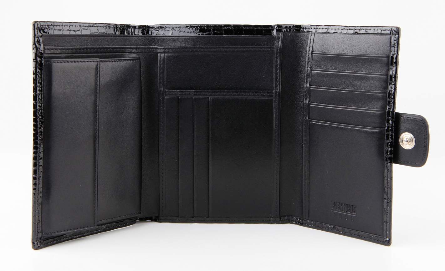 Женский элегантный кожаный кошелек Petek. Внутри есть отделение для купюр, 9 отделений для визиток/кредитных карт. Отделение для мелочи. Закрывается на кнопку.